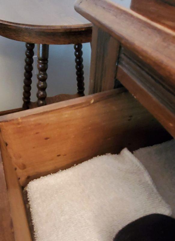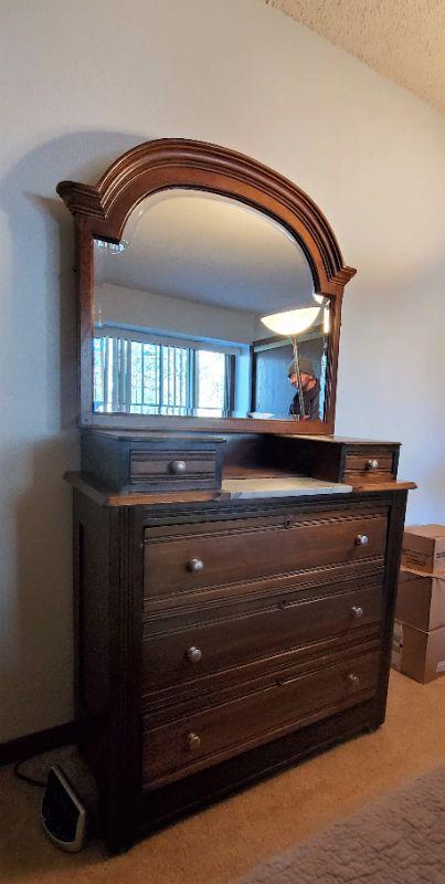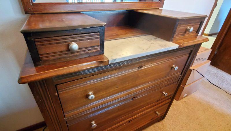 Antique Dresser with Marble Top and Mismatched Mirror - Dresser, 39"w x 40" t x 17" d, mirror, 41"w x 33" t