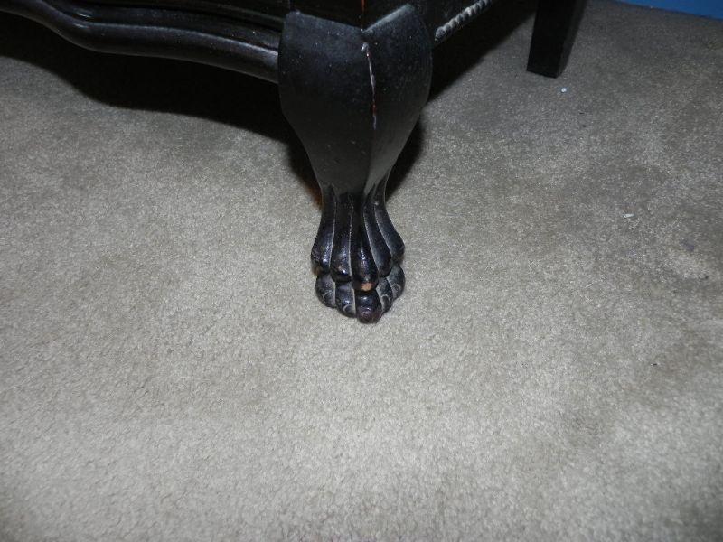 3 DRAWER, SOLID WOOD WITH A BLACK LACQUER WHICH IS CRACKING ON THE TOP FROM ONE SIDE TO THE OTHER OTHERWISE GREAT CONDITION,