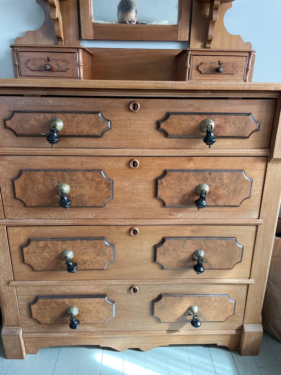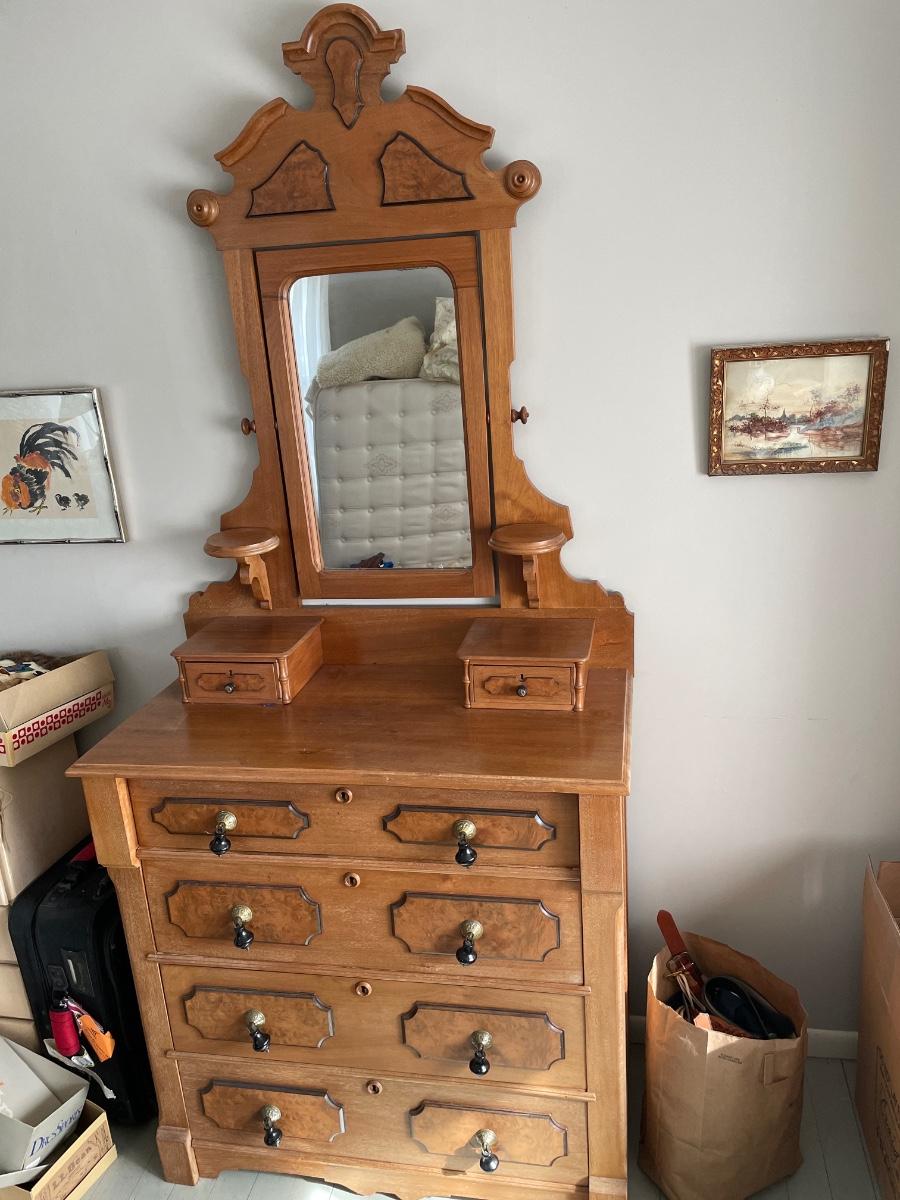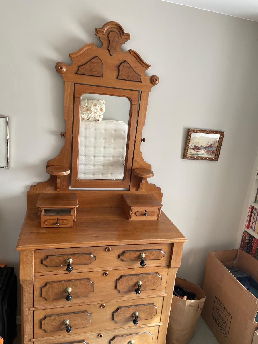 Beautiful wood. 39x39x20. Mirror to top of dresser is 47”h