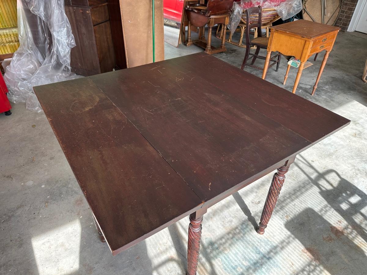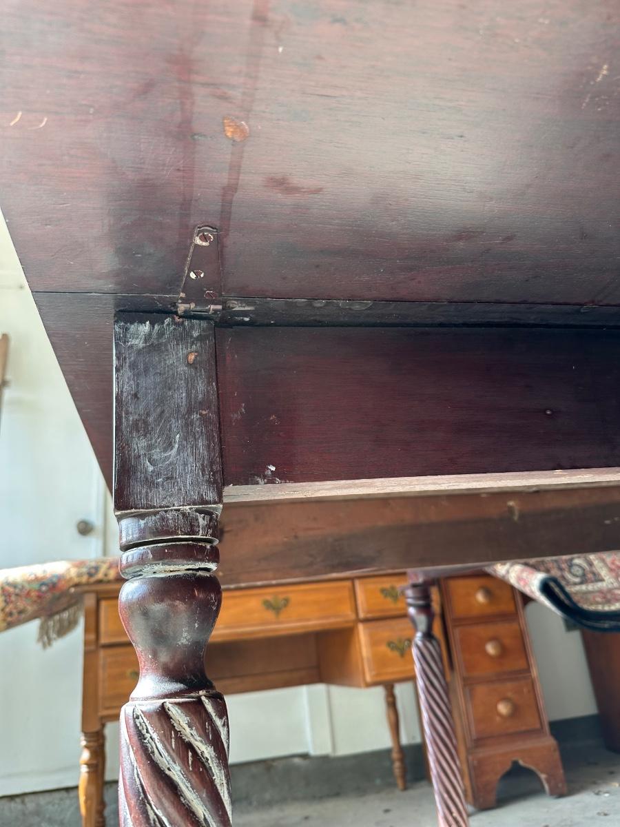 Antique Drop-Leaf Dining Table w/ Barley Twist Legs