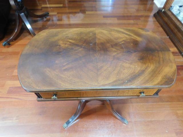 Antique Duncan Phyfe Harp Side Table with Drawer by Fine Arts Furniture Company 26"x14"x24" gorgeous wood and nice finish. expect some wear or scratches considering age
