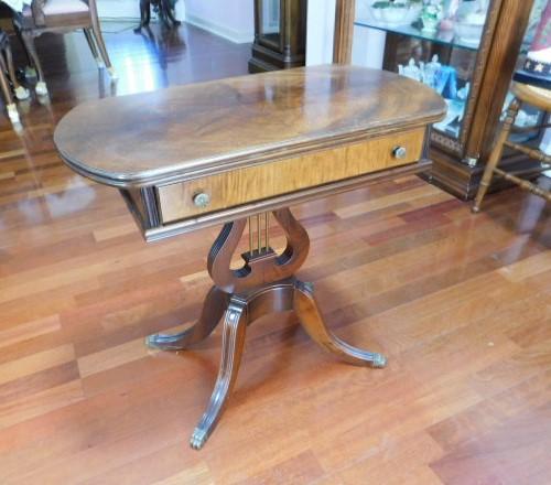 Antique Duncan Phyfe Harp Side Table with Drawer by Fine Arts Furniture Company 26"x14"x24"