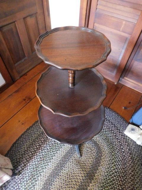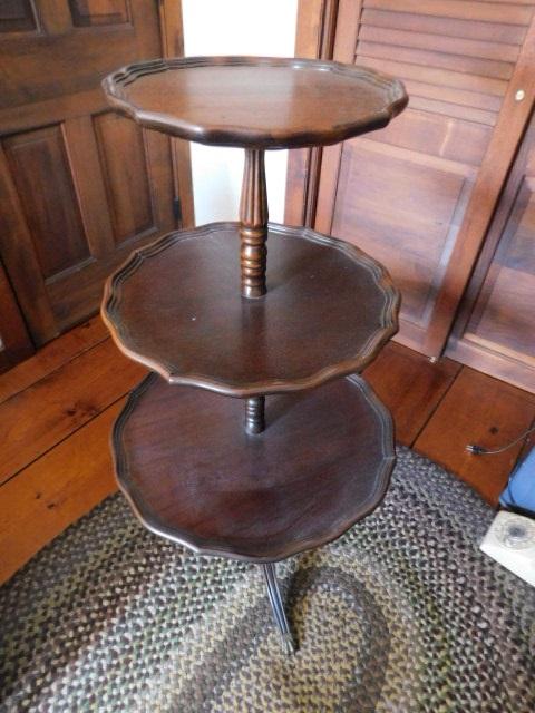 Antique Duncan Phyfe Mahogany 3 Tier Dumb Waiter 41" may have wear or scratches