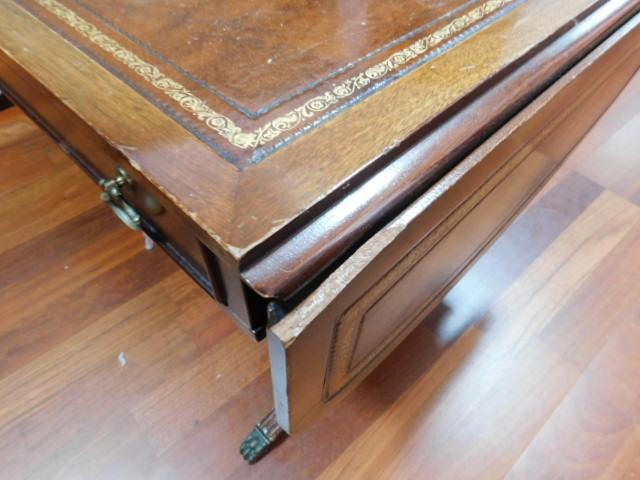 Antique Duncan Phyfe Mahogany Leather Top Double Drawer Drop Leaf Coffee Table