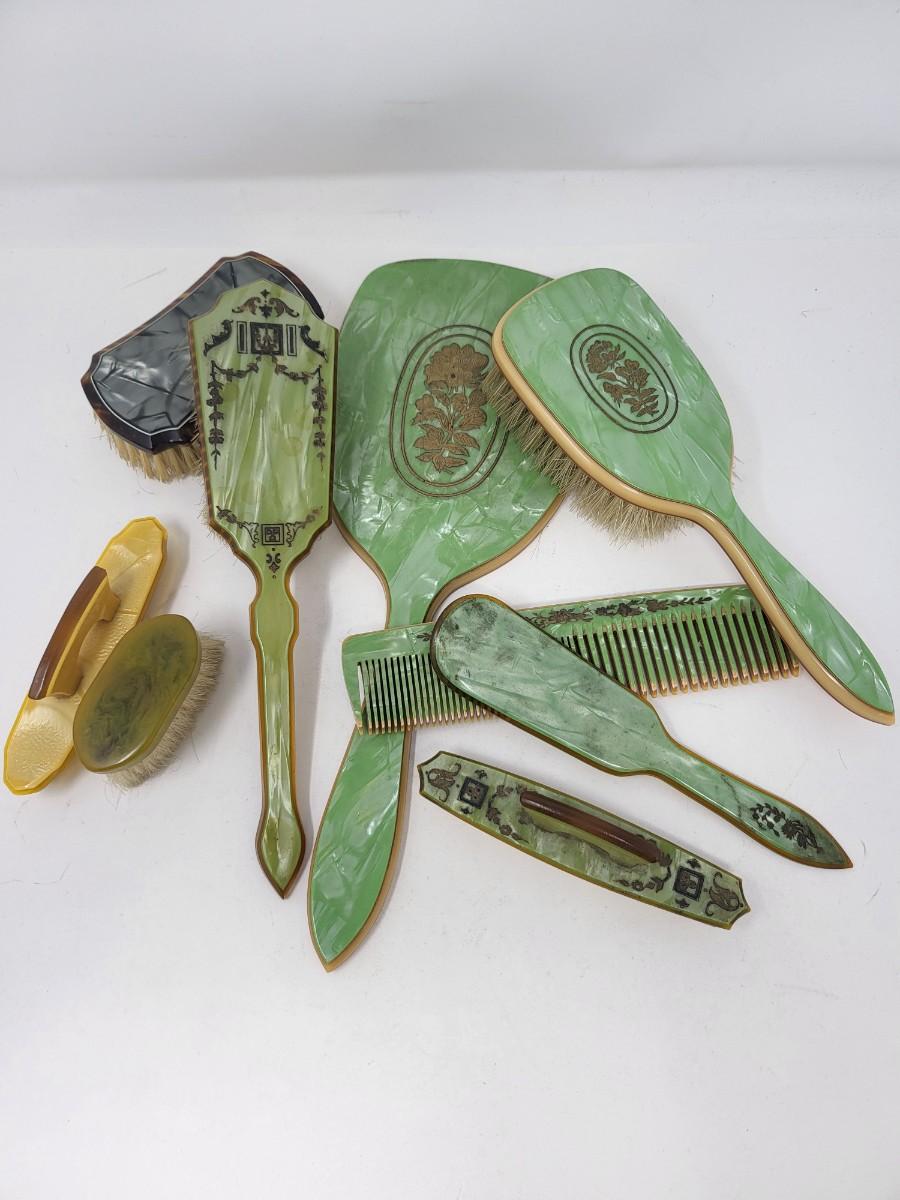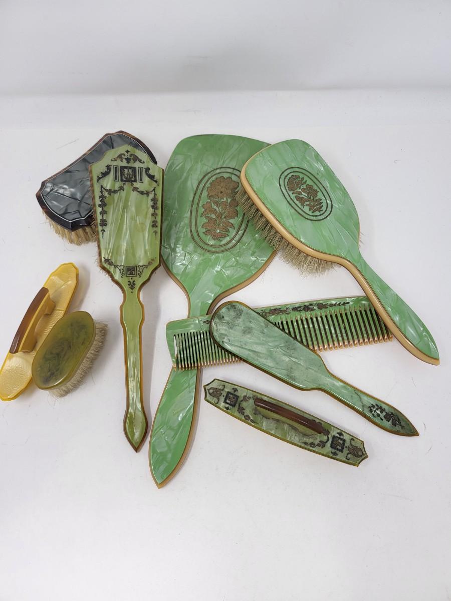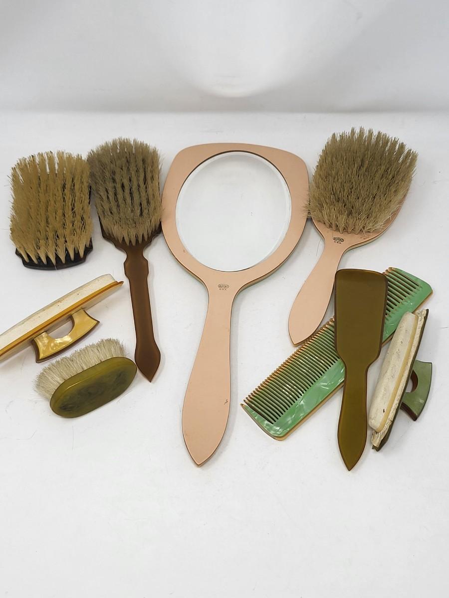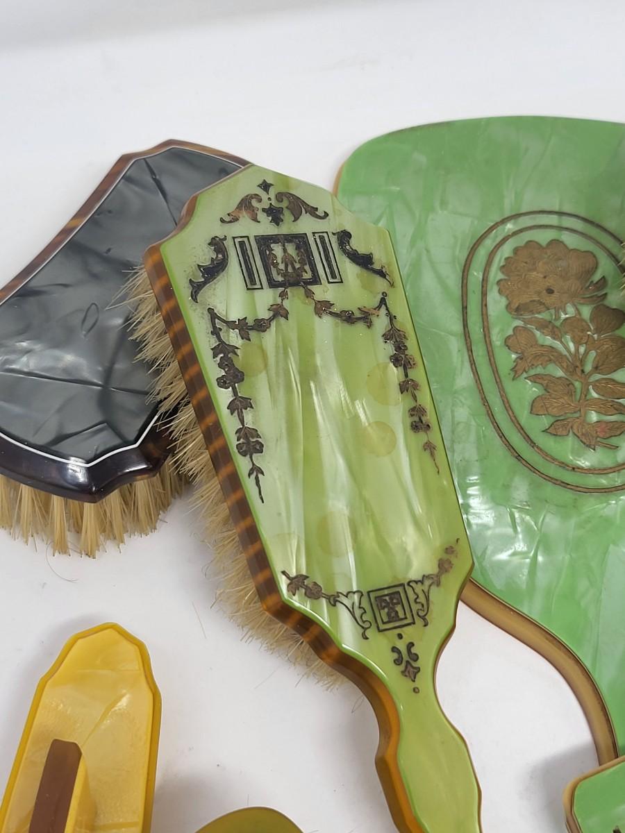 Antique Dupont Celluloid & Bakelite Brushes, Mirror & More