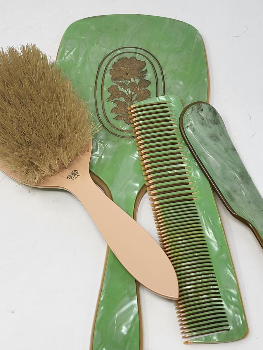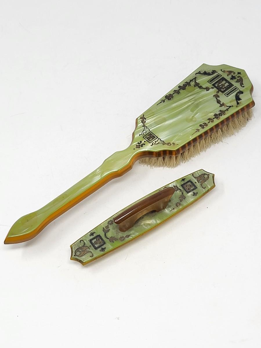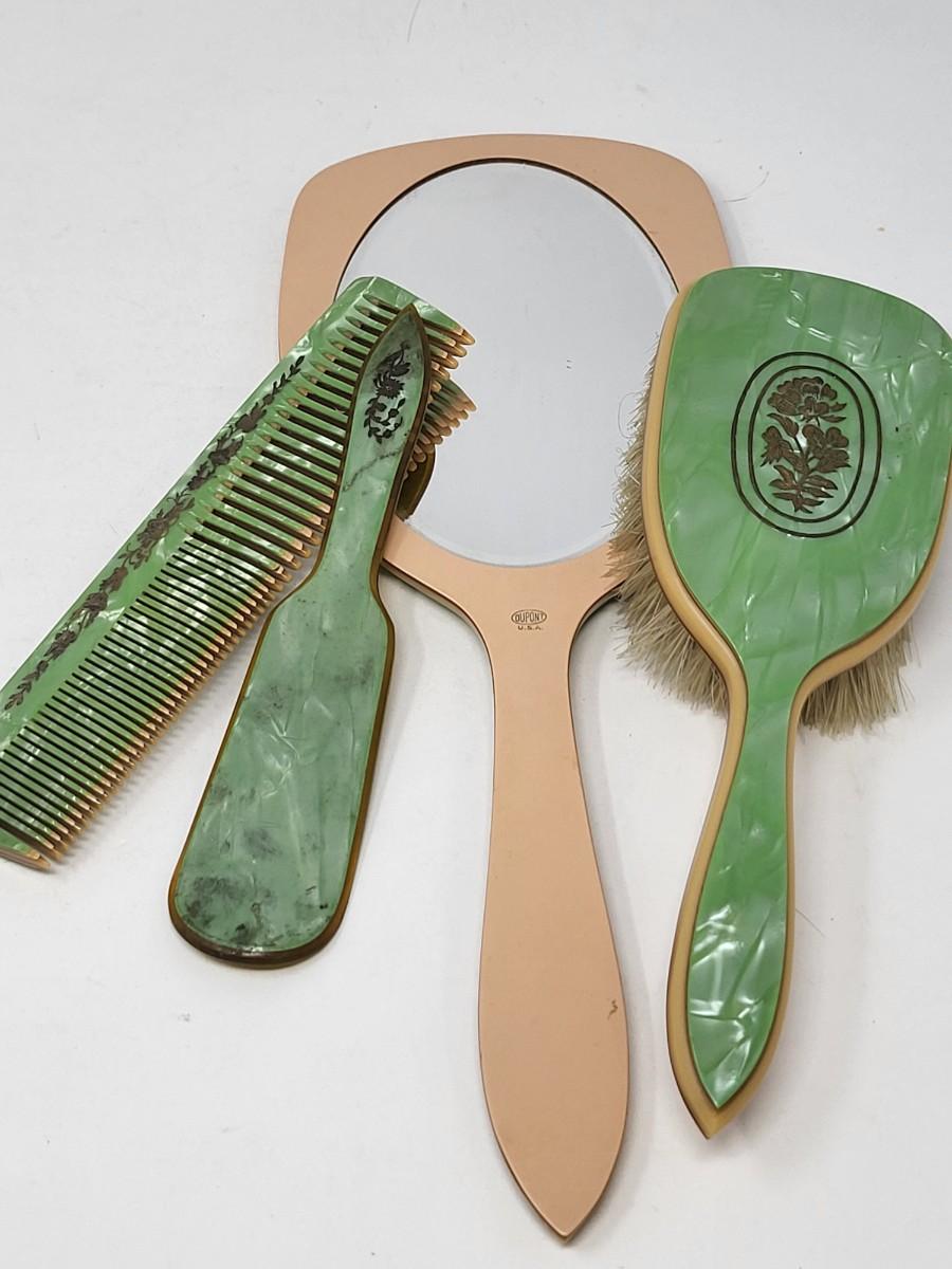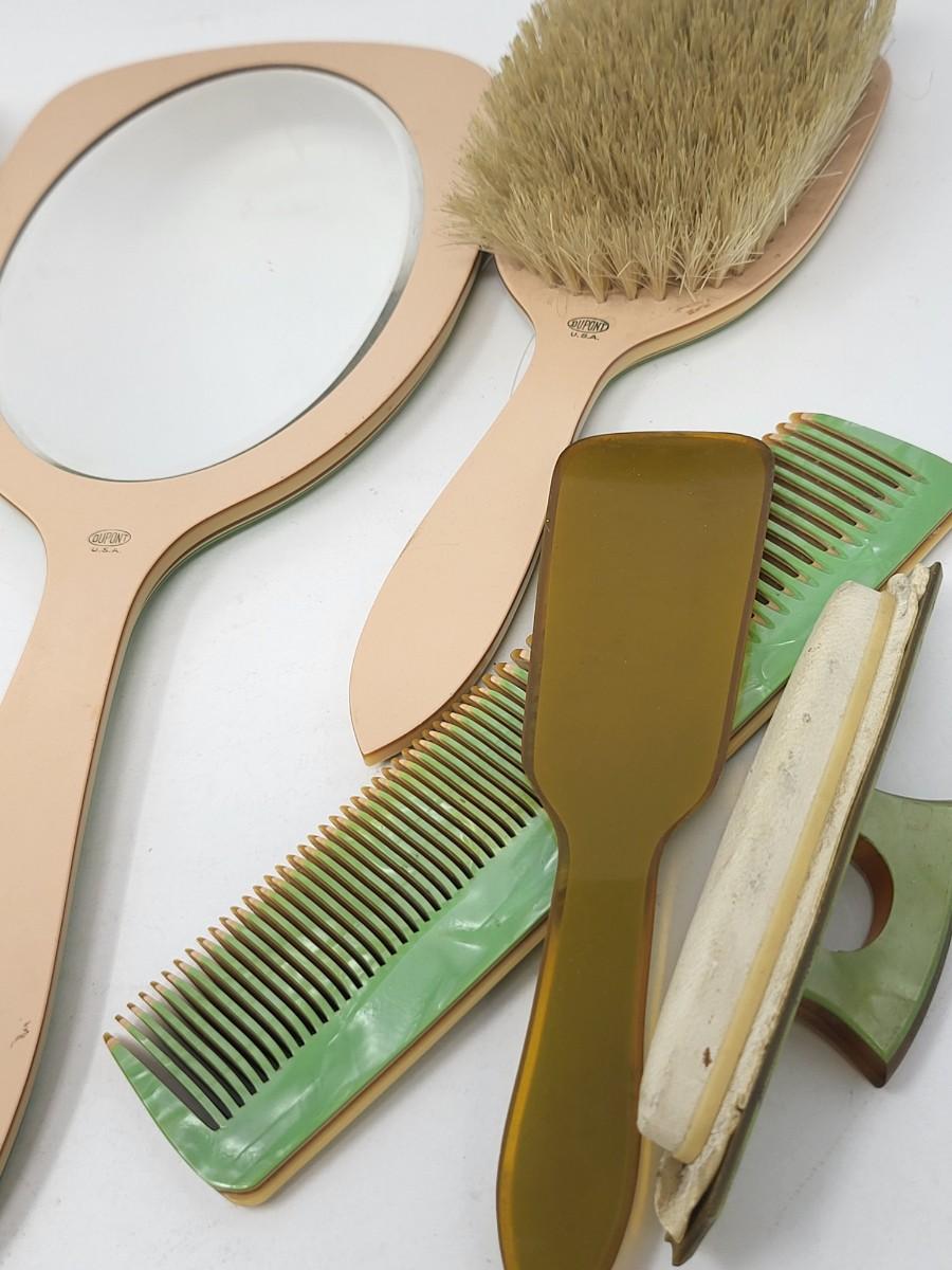 Antique Dupont Celluloid & Bakelite Brushes, Mirror & More