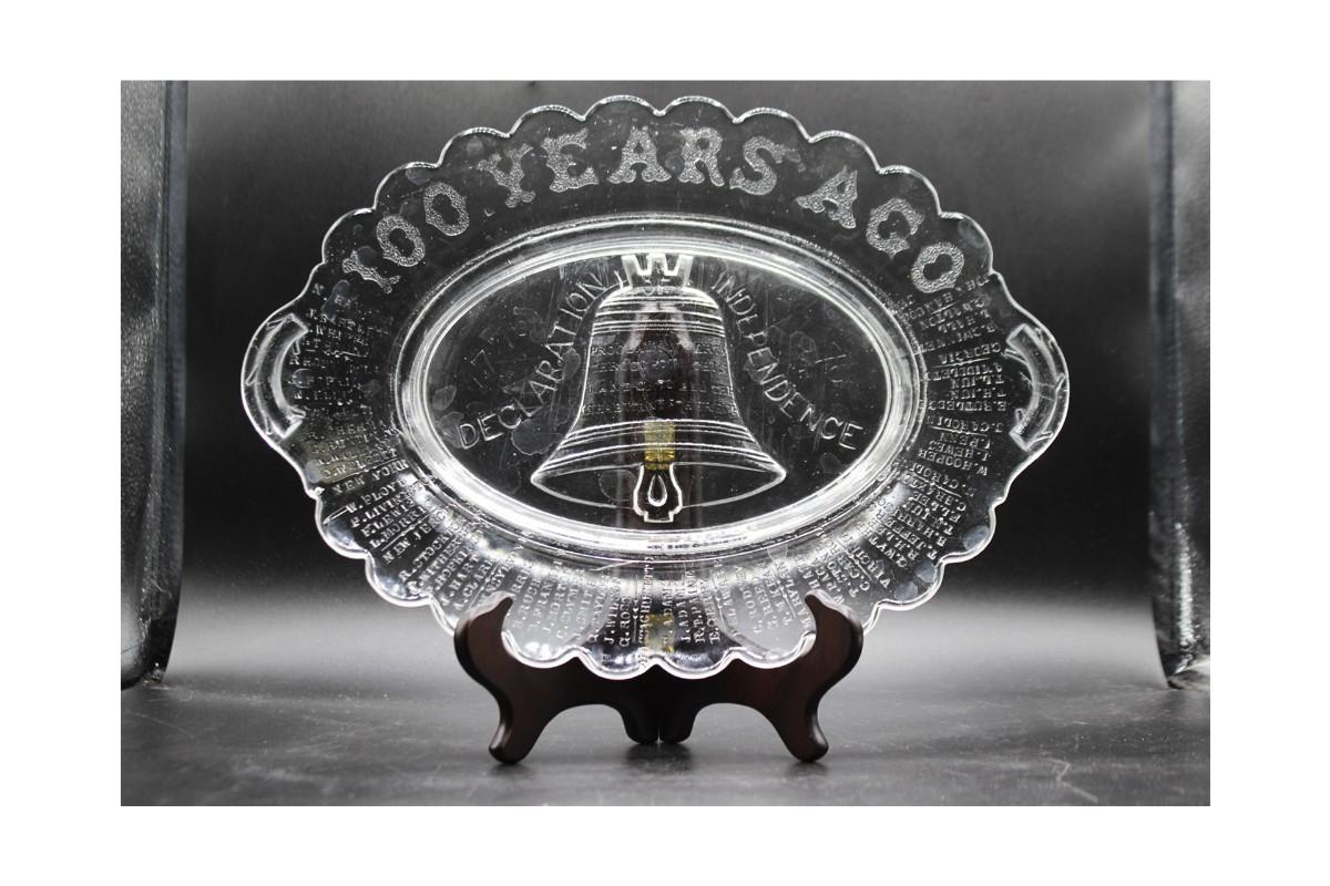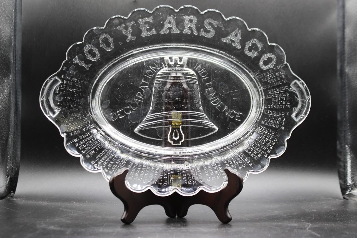 Antique EAPG 1876 Gillinder Declaration of Independence Liberty Bell Clear Glass Commemorative Plate