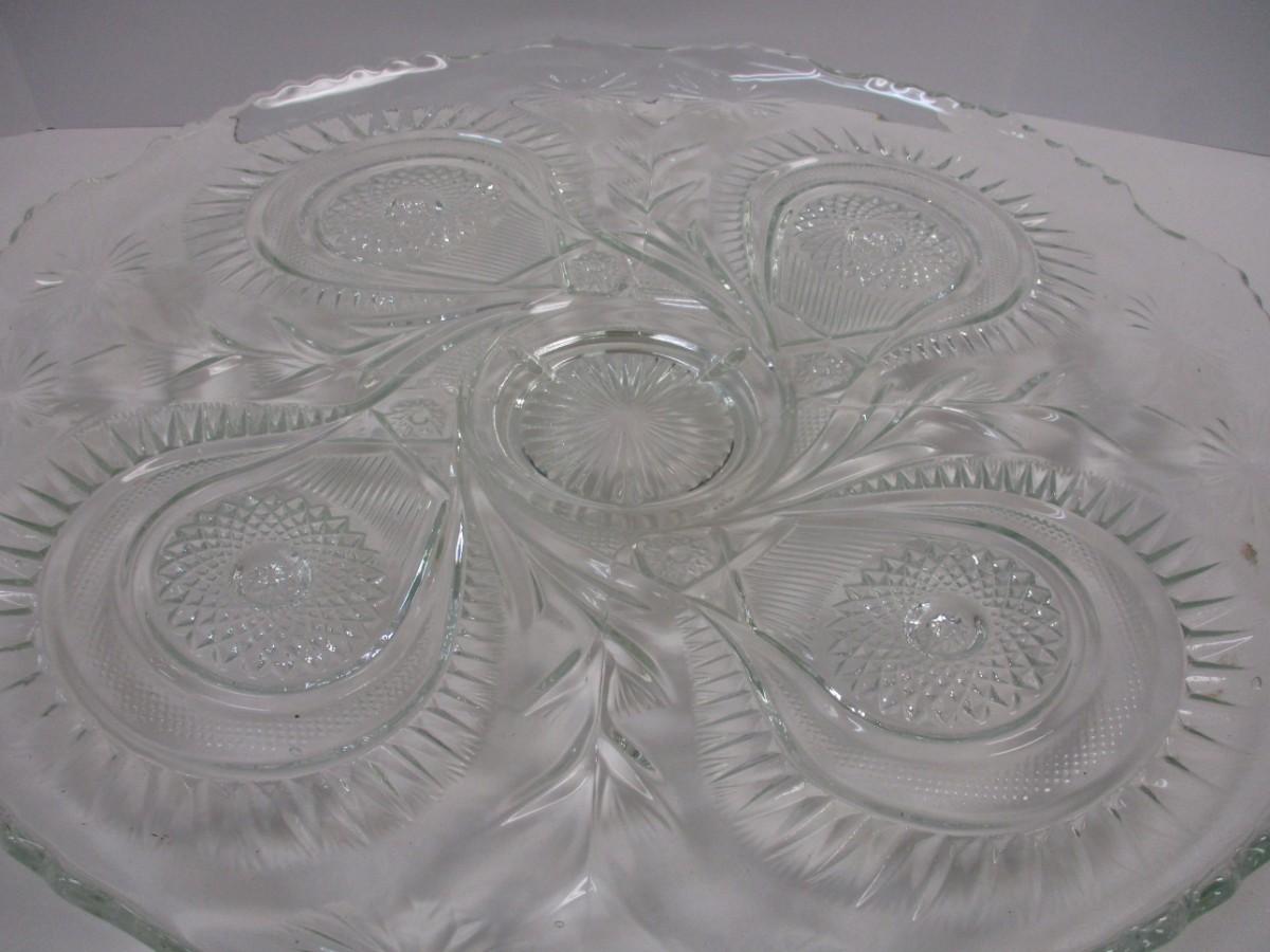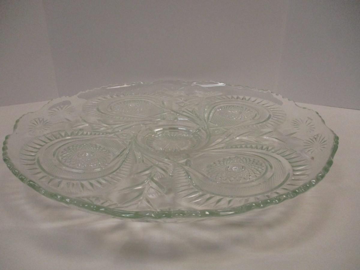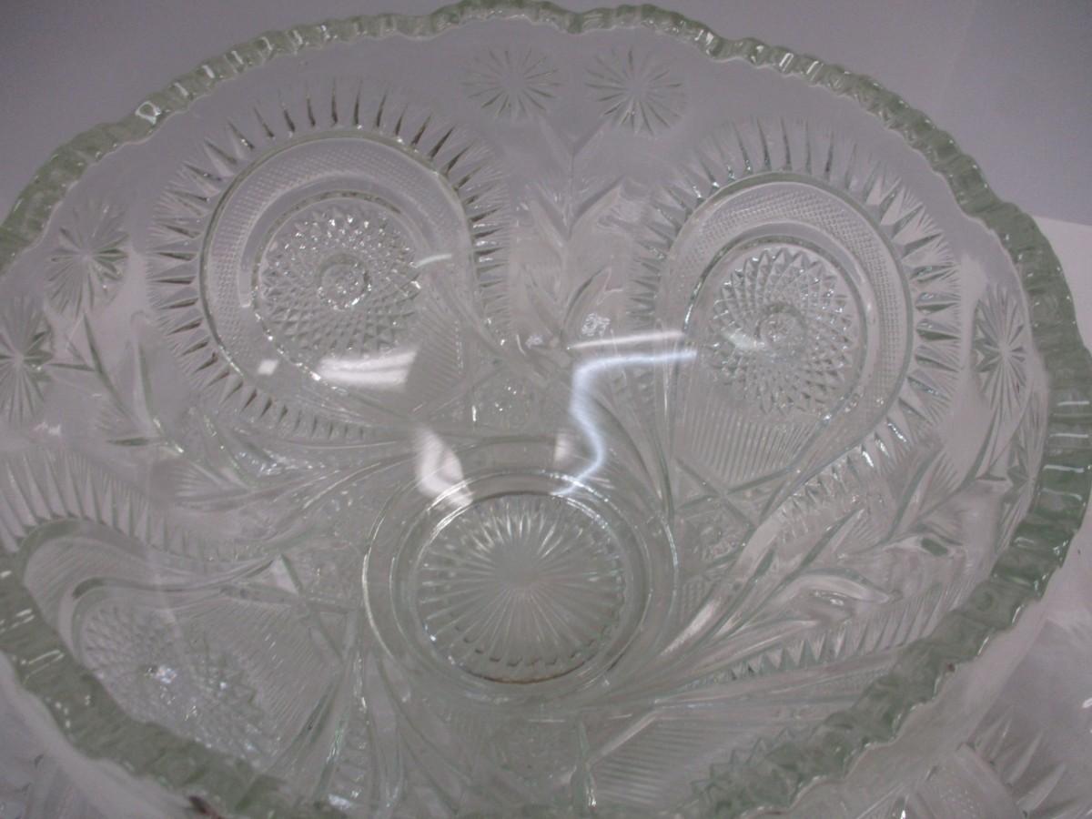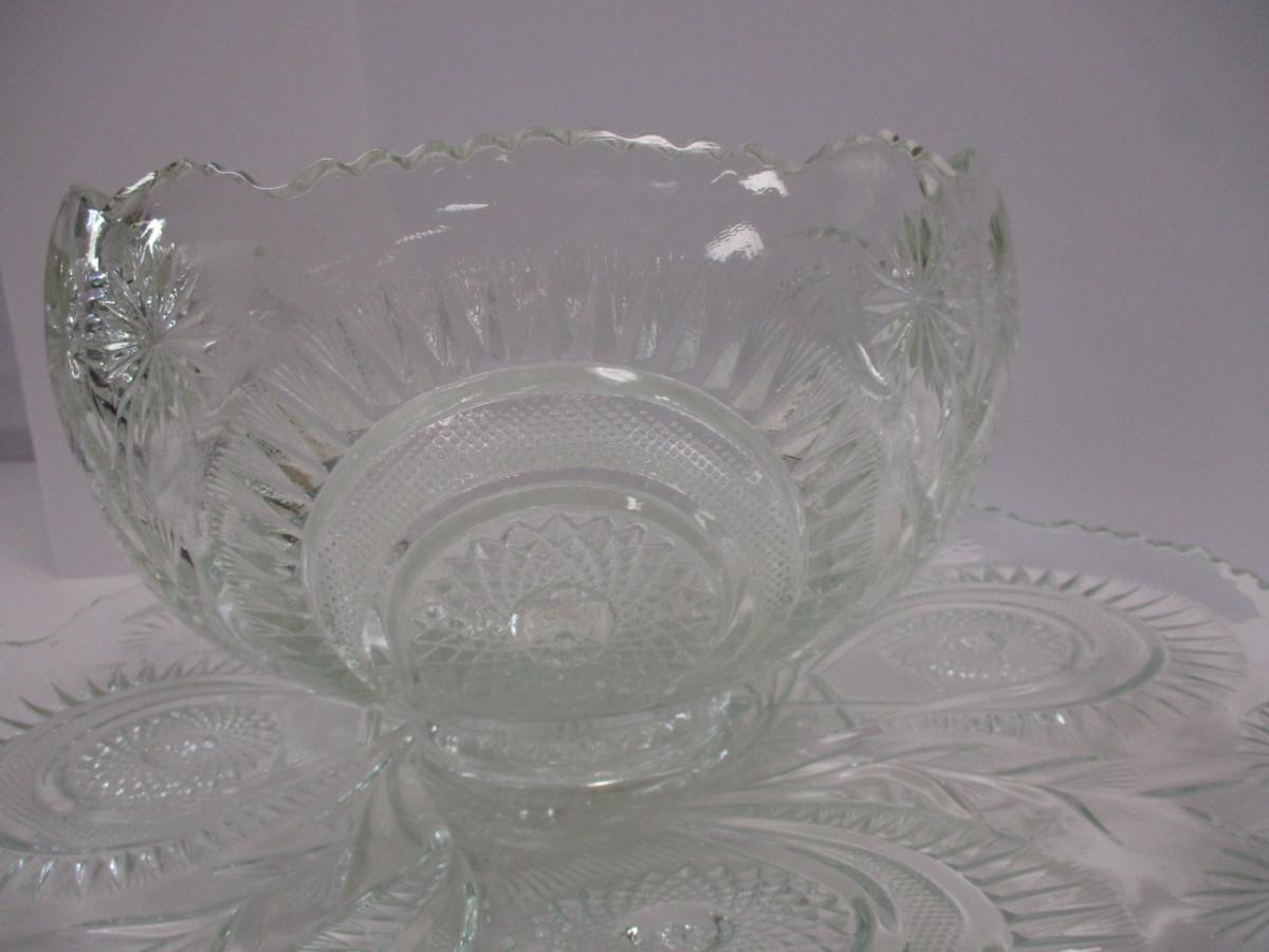 Antique EAPG US Glass Co. Slewed Horseshoe Radian Daisy Punch Bowl & Underplate