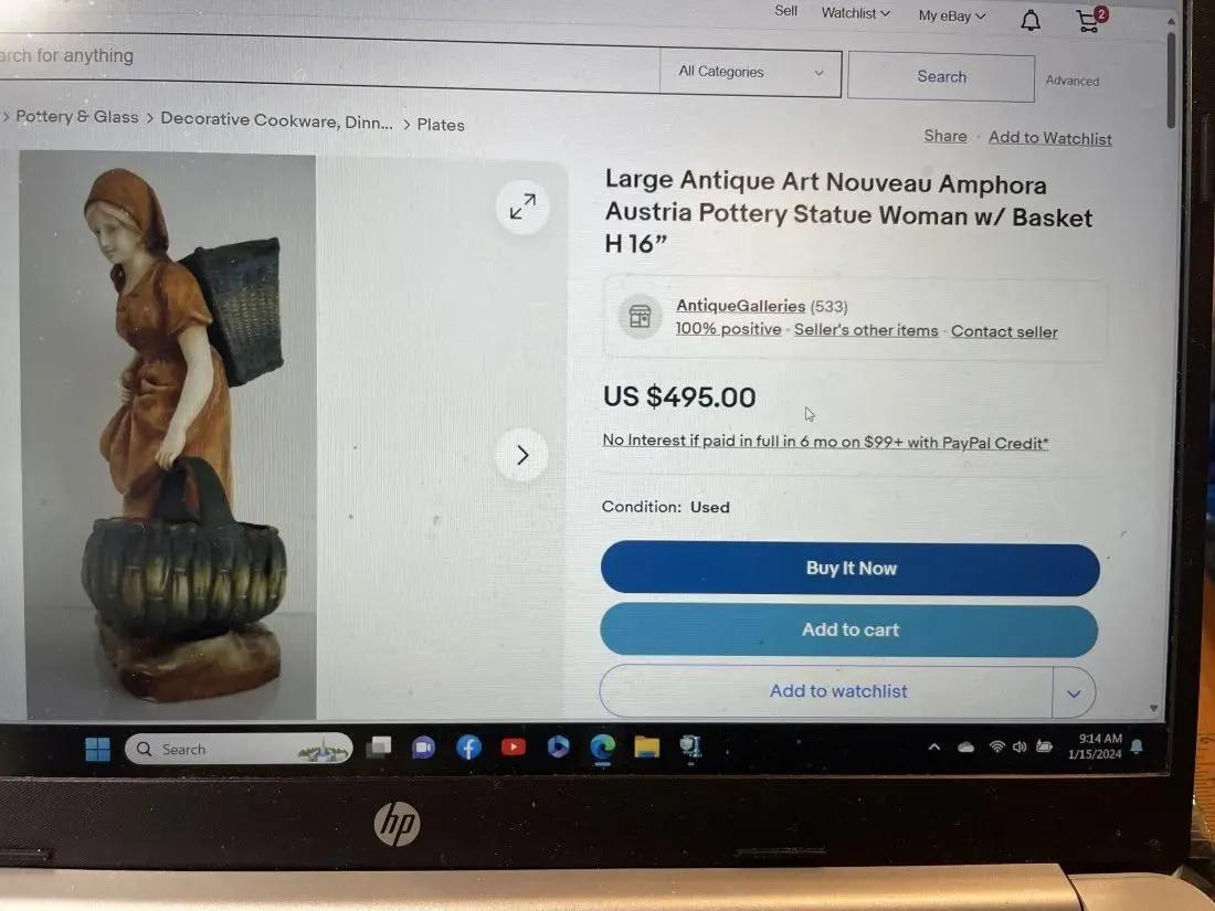 Antique Early 1900's Scarce Austrian Turn-Teplitz Amphora Porcelain Lady with Basket Statue 16.5" Tall #4623 in VG Condition as Pictured. (Free Local Pickup Only in Berlin, NJ 08009)