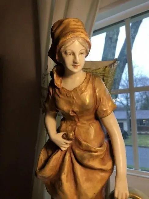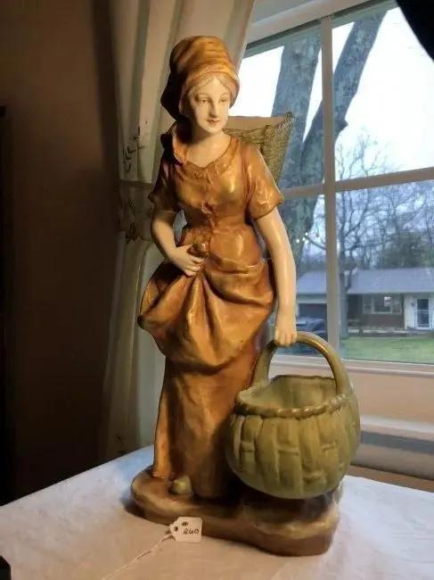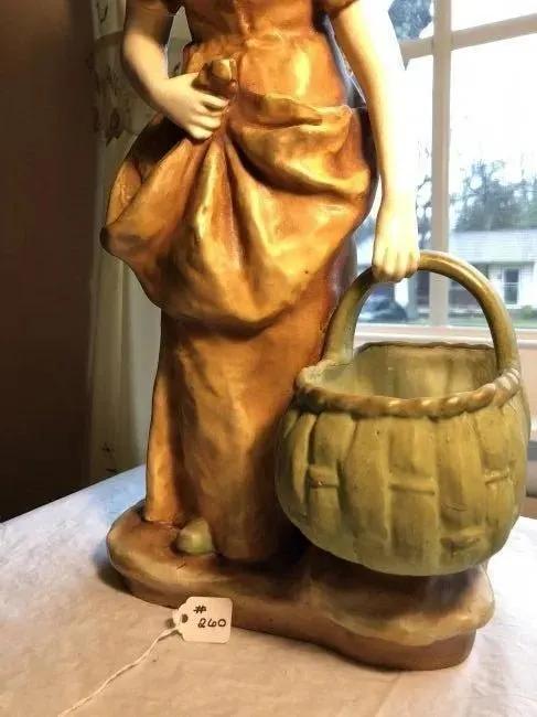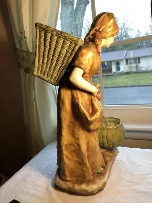 Antique Early 1900's Scarce Austrian Turn-Teplitz Amphora Porcelain Lady with Basket Statue 16.5" Tall #4623 in VG Condition as Pictured. (Free Local Pickup Only in Berlin, NJ 08009)