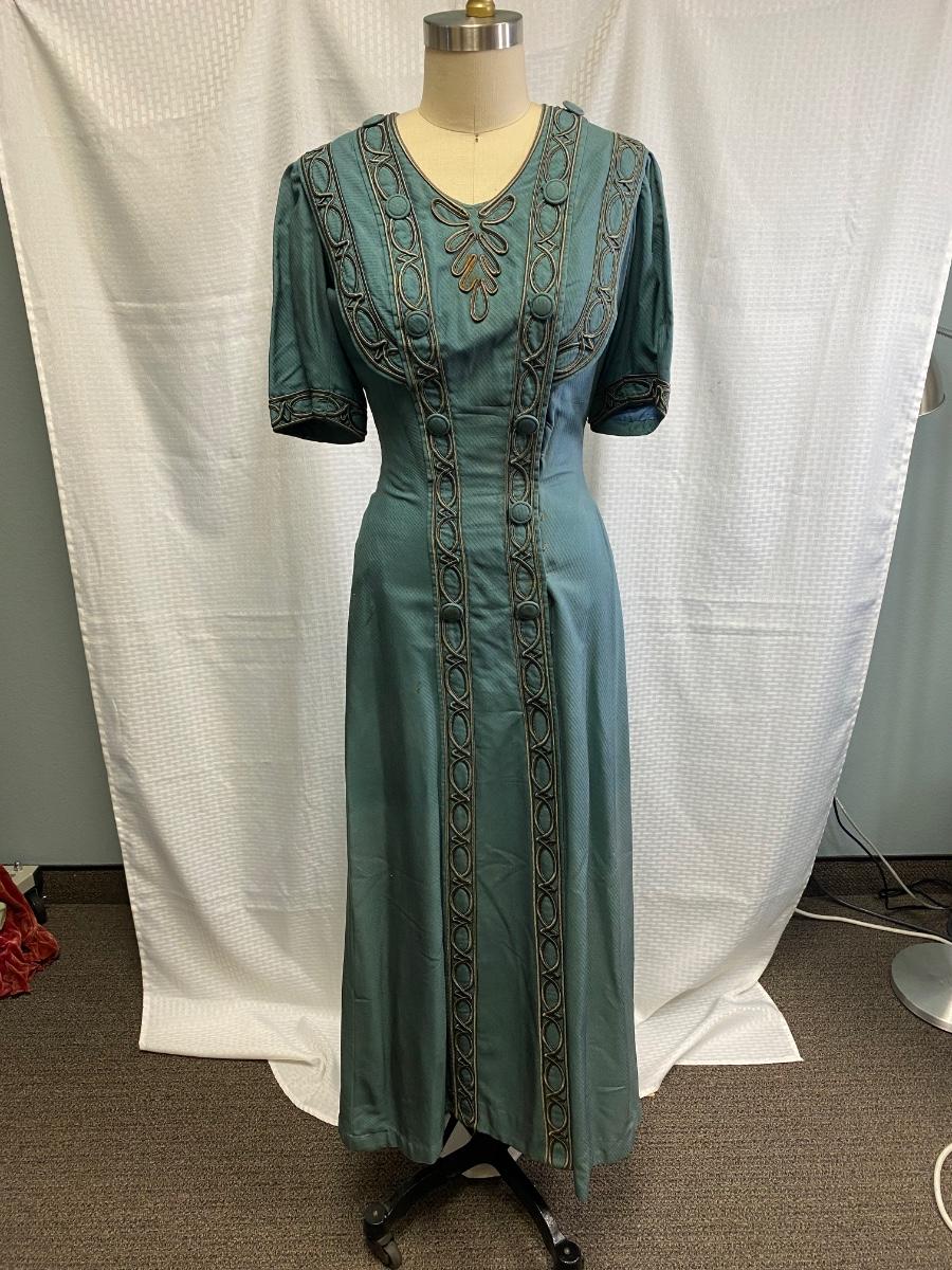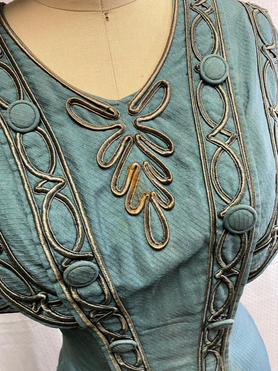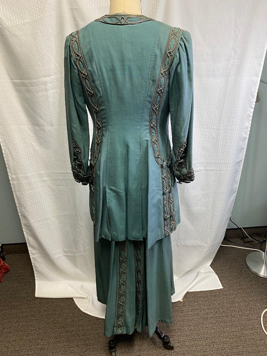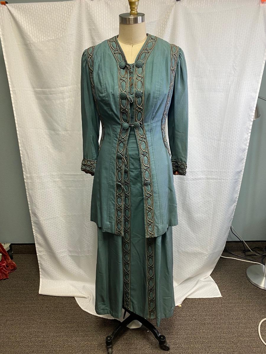 Antique Early 1900s Two Piece Dress and Overcoat Teal Blue A. Cascioli New York