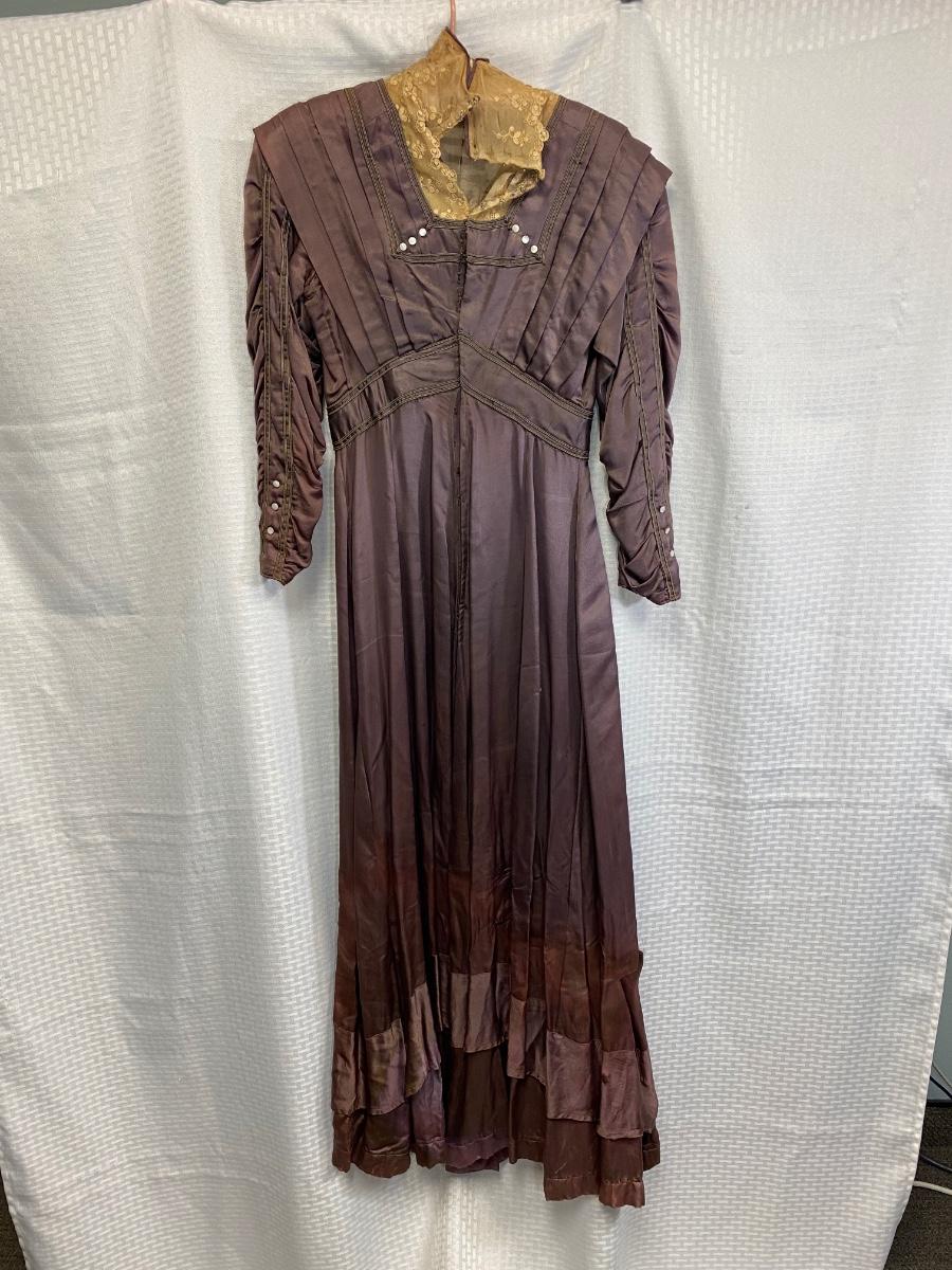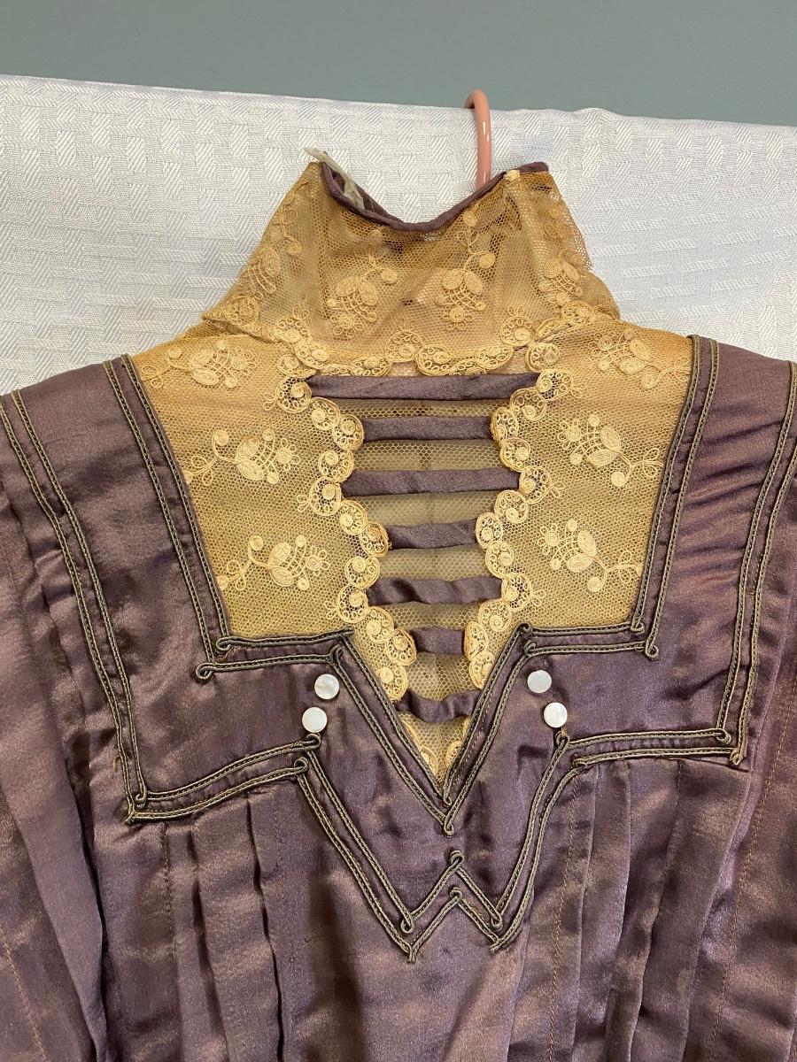 Antique Early 1900s Victorian Violet Silk Long Sleeve Dress