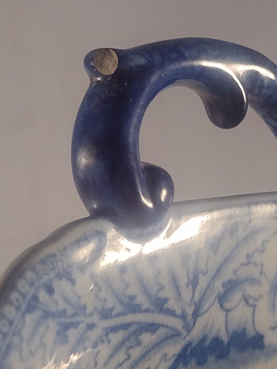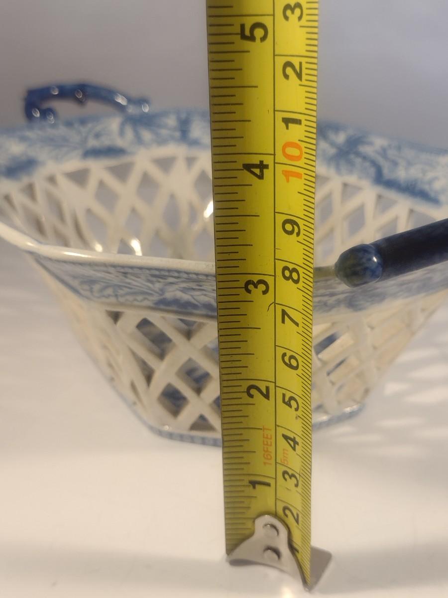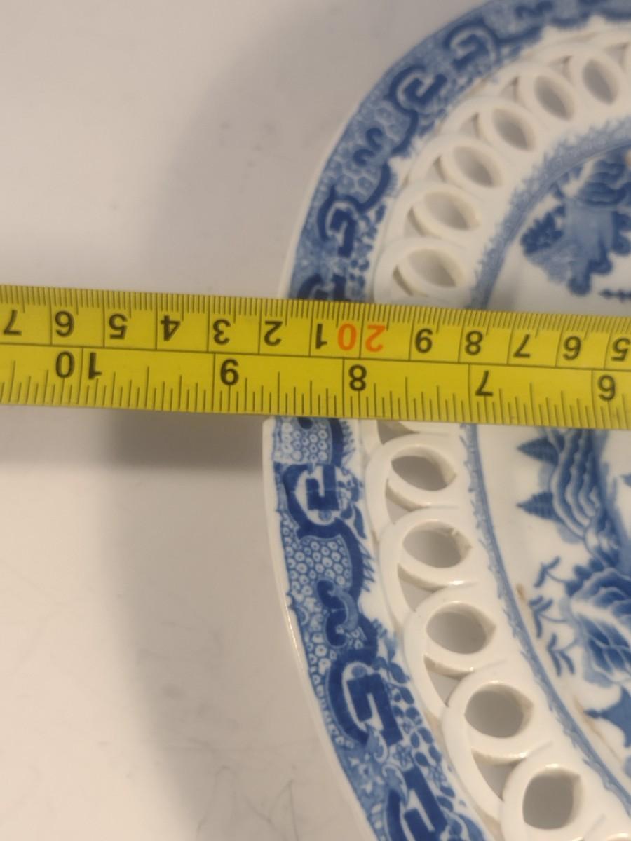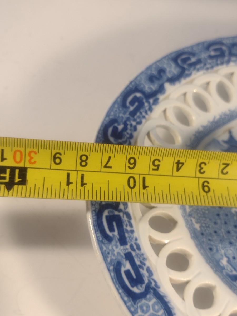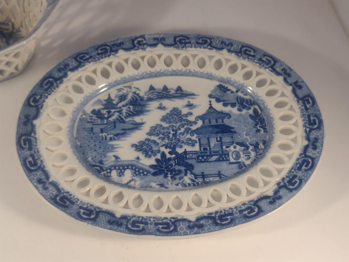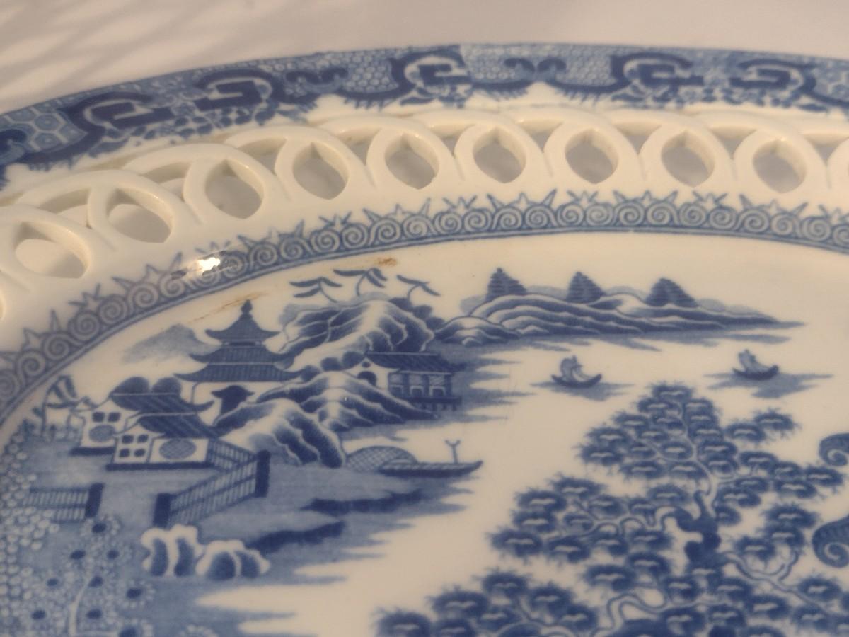 Antique Early 19th Century Blue and White Davenport Ceramic Pierced Chestnut Basket and Underplate