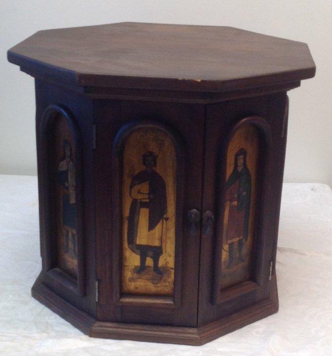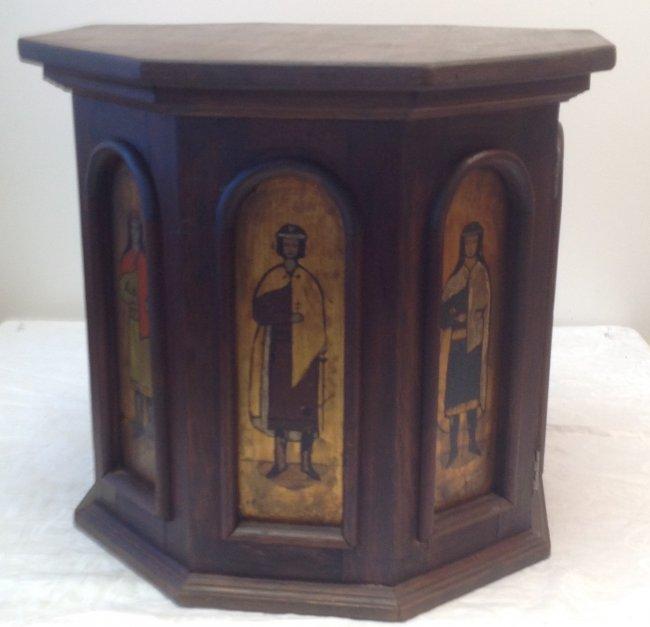 Description: Antique Eastern Orthodox style side chest Octagon Shape. It is decorated with Orthodox male/female images. Measurement approximate: 18 H x 20 W x 20 D . Shipping Cost: Local pick up only or contact us for quote.
