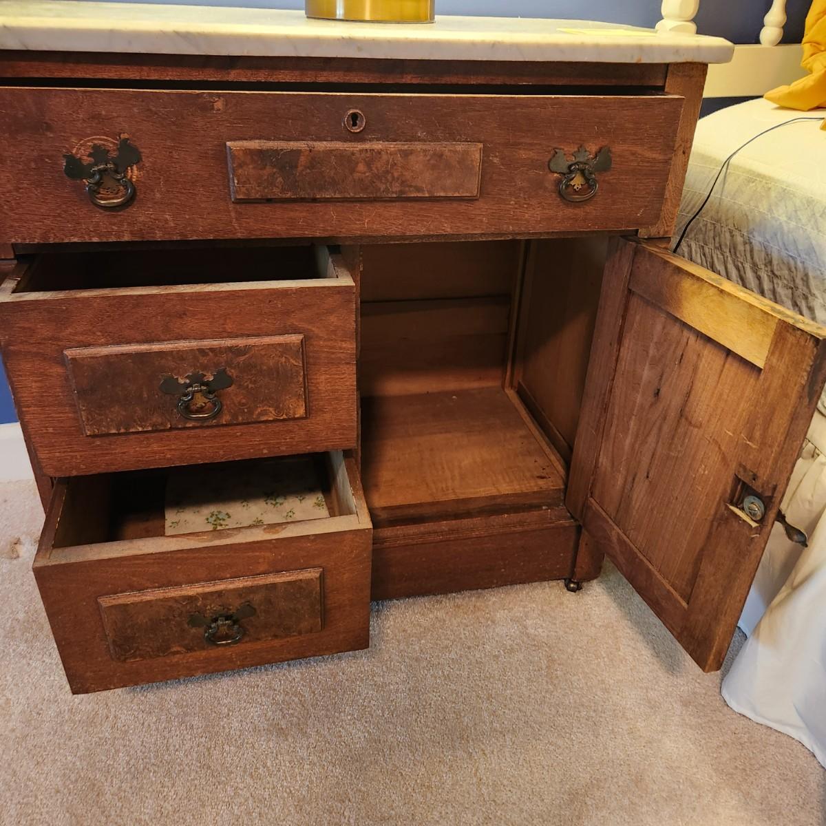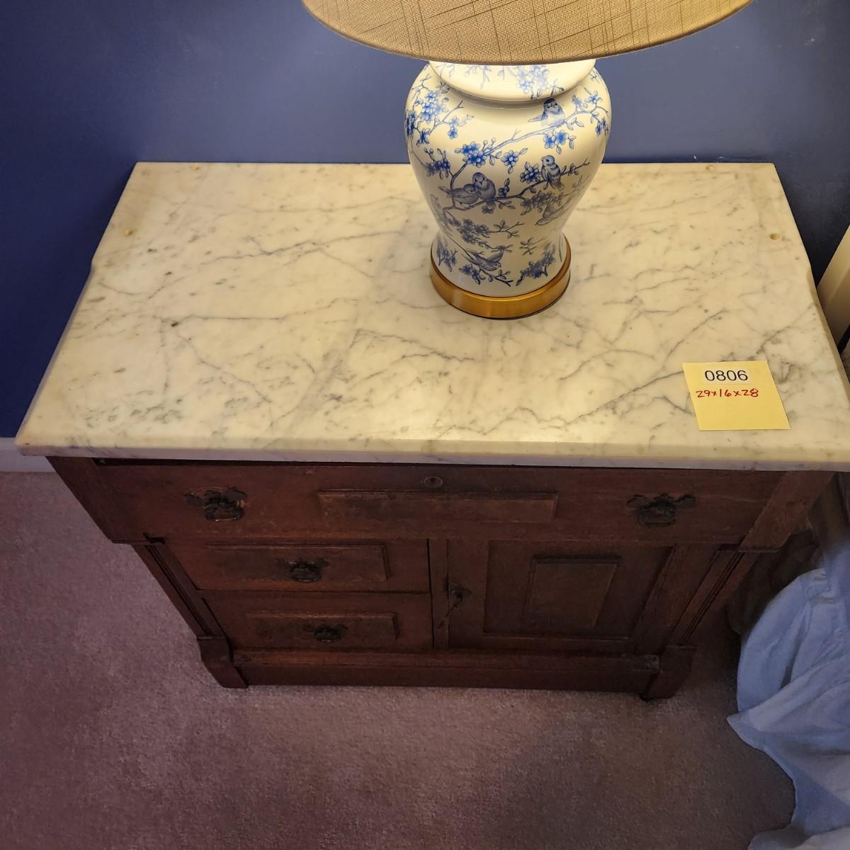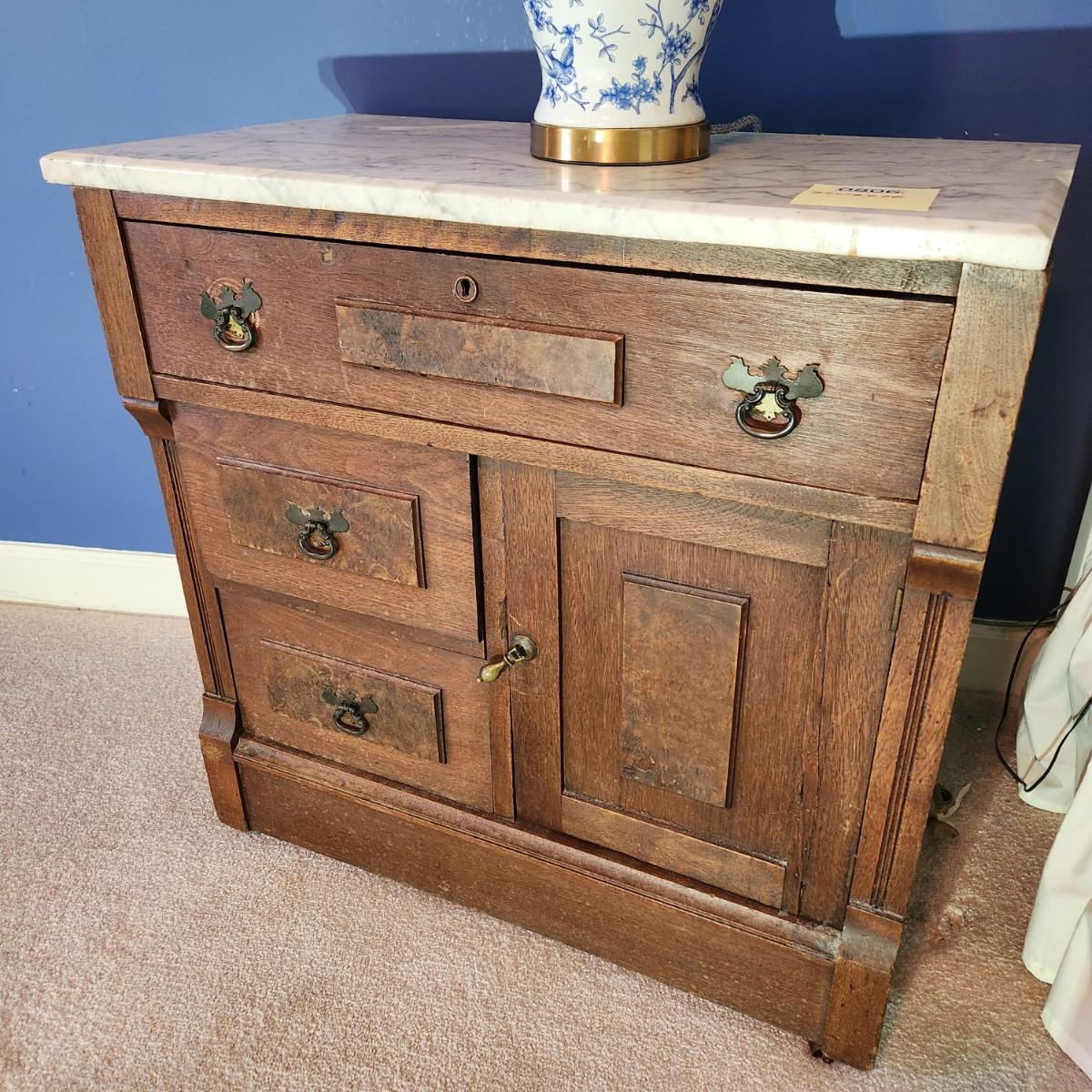 Antique Eastlake Marble Top Washstand Cabinet 29x16x28