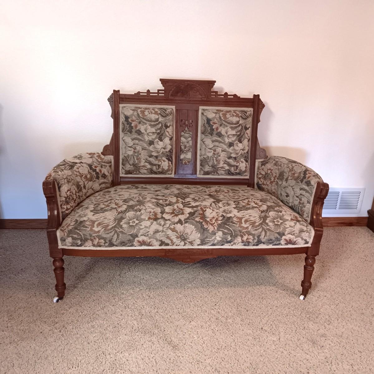 ANTIQUE EASTLAKE STYLE SETTEE ON CASTERS perfect condition!