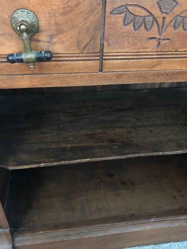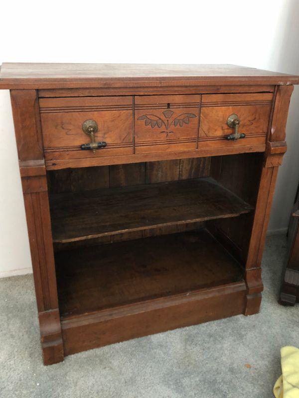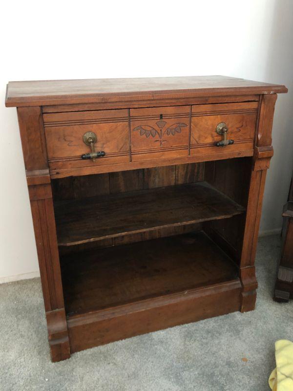 Antique Eastlake style Wood Book Shelf with Drawer with brass pulls