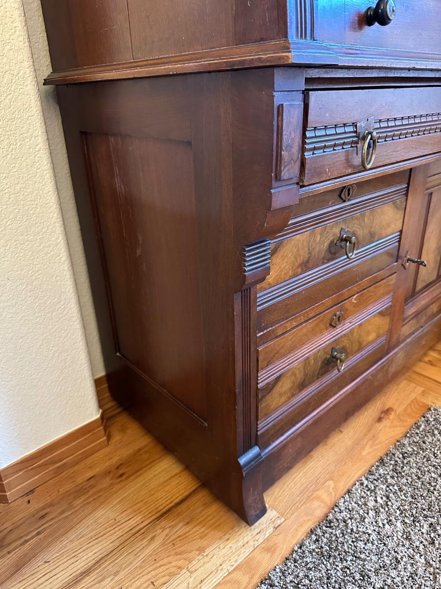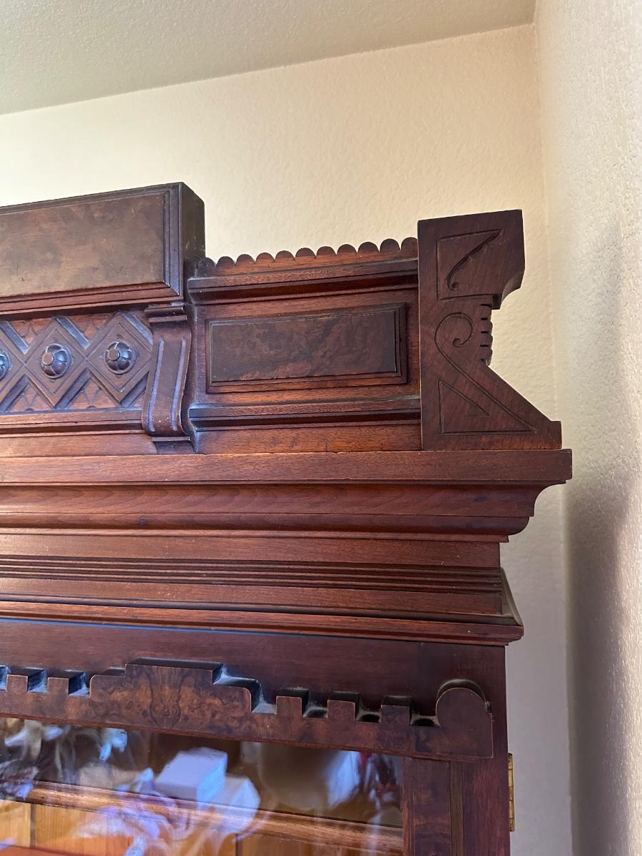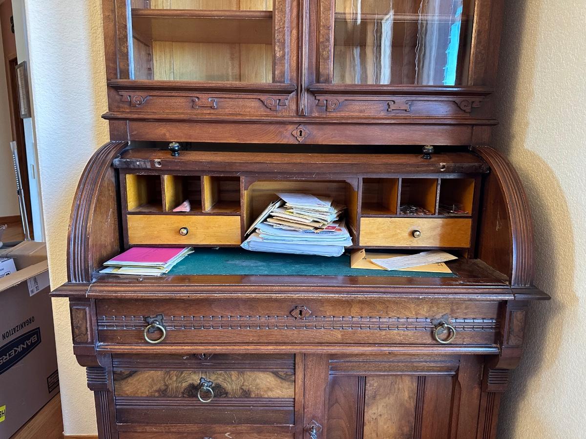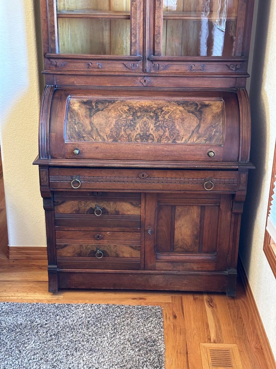 ANTIQUE EASTLAKE WALNUT CYLINDER ROLL TOP SECRETARY DESK AND BOOKCASE