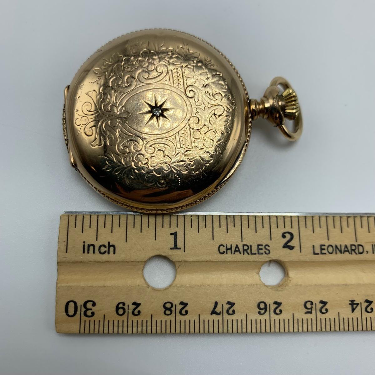 Antique E.B. Woodard & Co. Pocket Watch with Diamond & 14K (B2-HS)