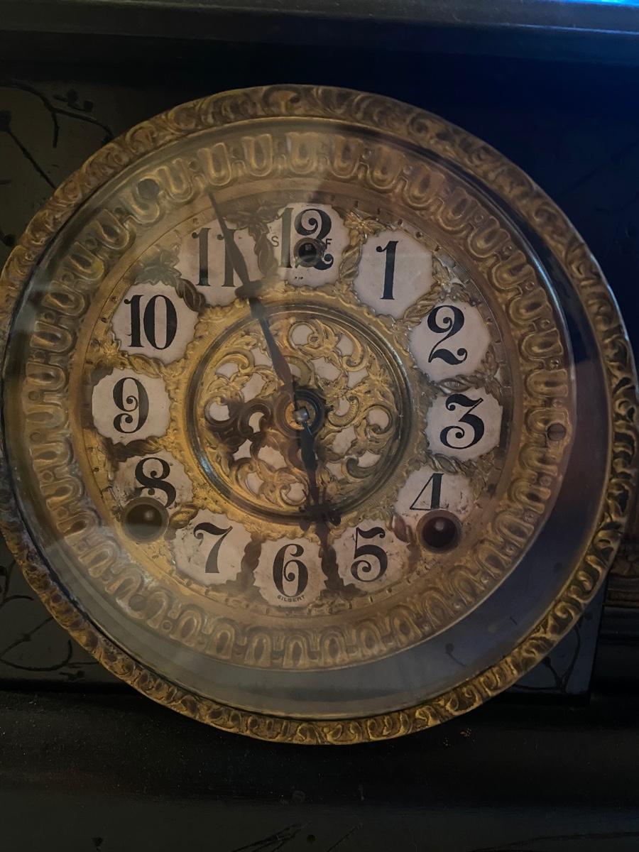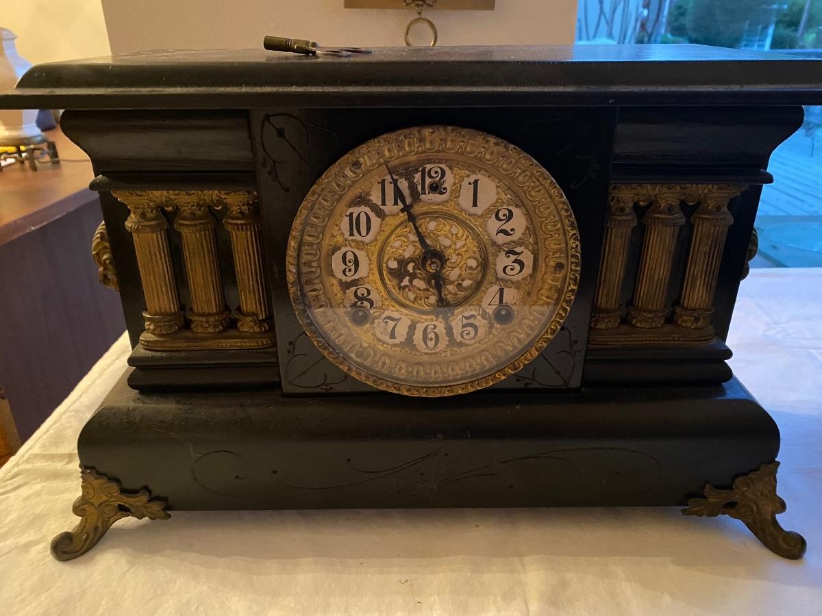 Antique Ebony mantle clock. Non-working, but great display piece. Wm L Gilbert Clock Co. 17-1/2w x 7-1/4d x 11h.