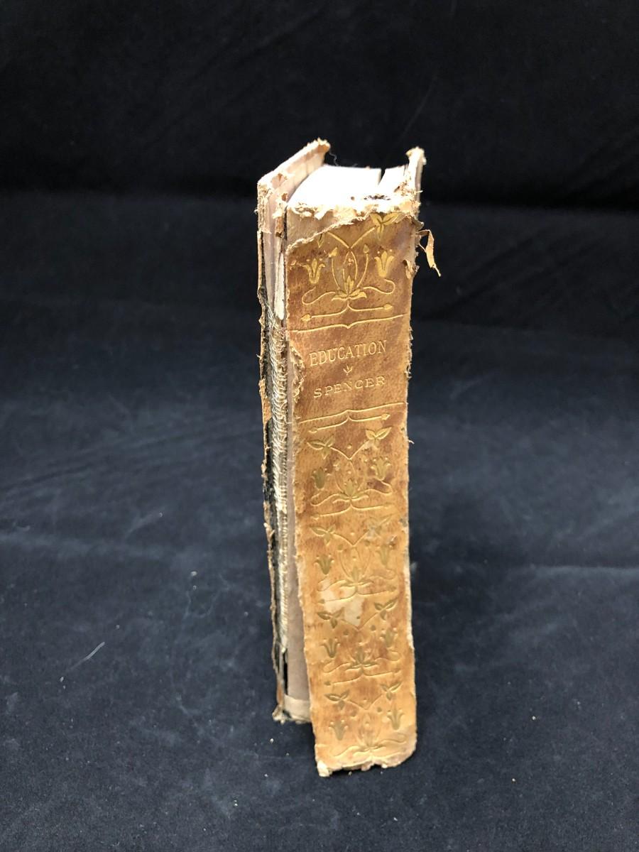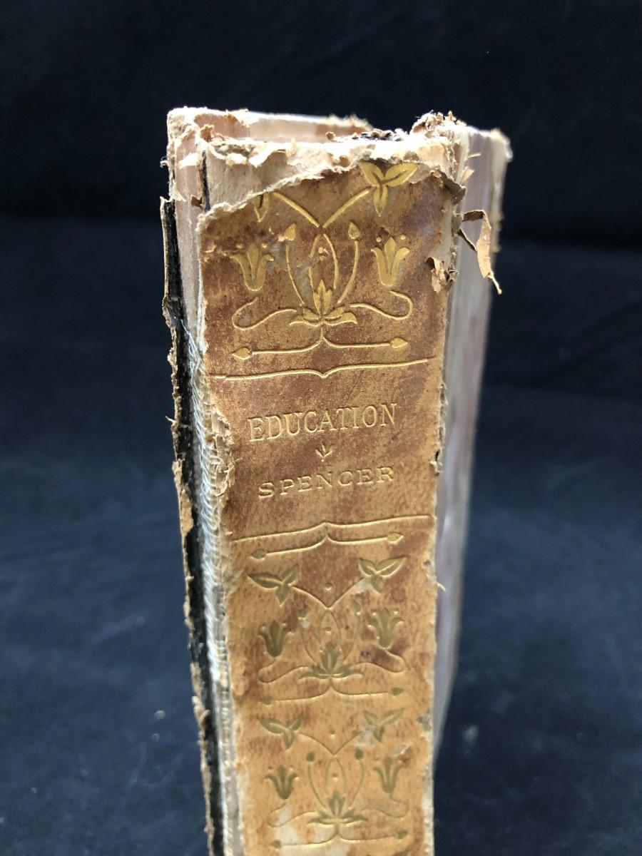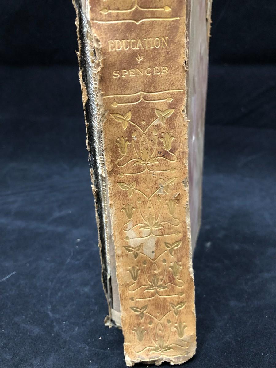Antique copy of Education by Herbert Spencer, circa 1900. Published by Hurst & Company New York. In fair condition, with damage to the binding (shown in photos).