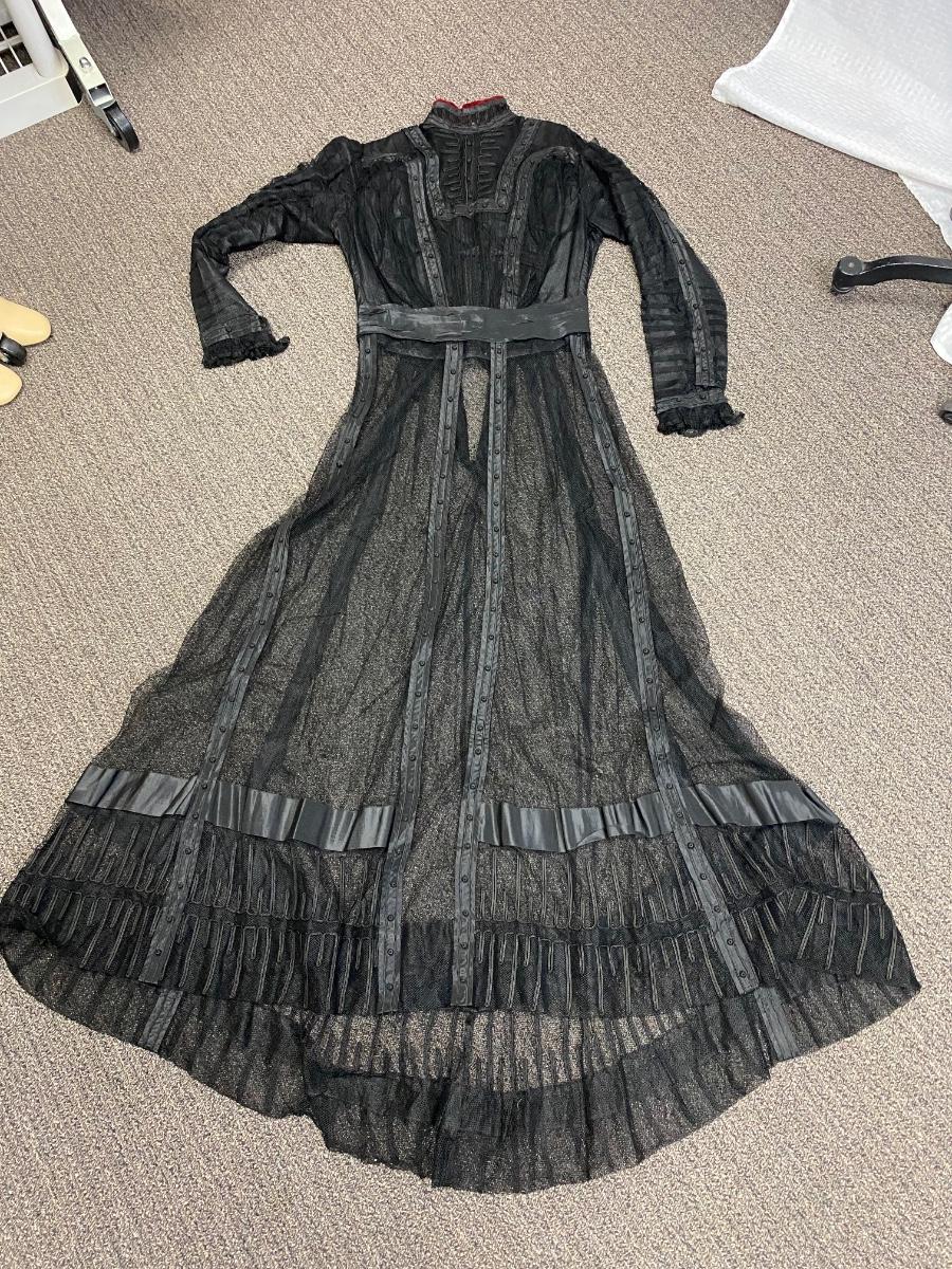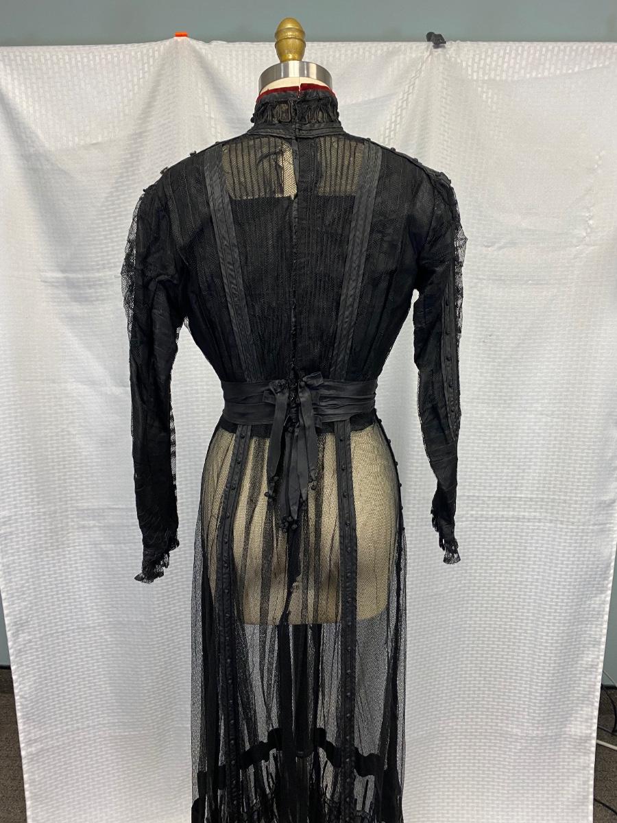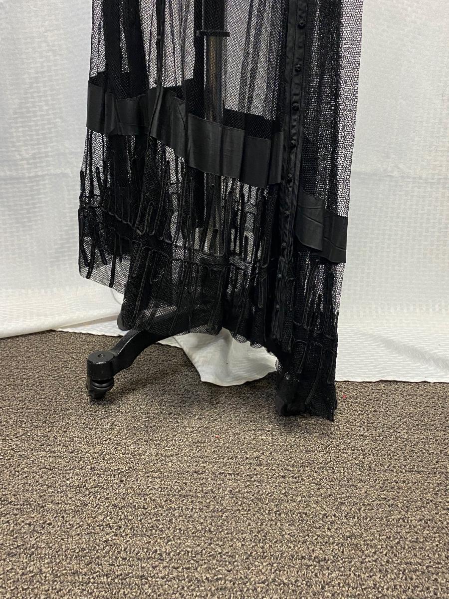 Antique Edwardian Victorian Black Lace Mesh Full Length Petticoat Dress Romantic Gothic Boho