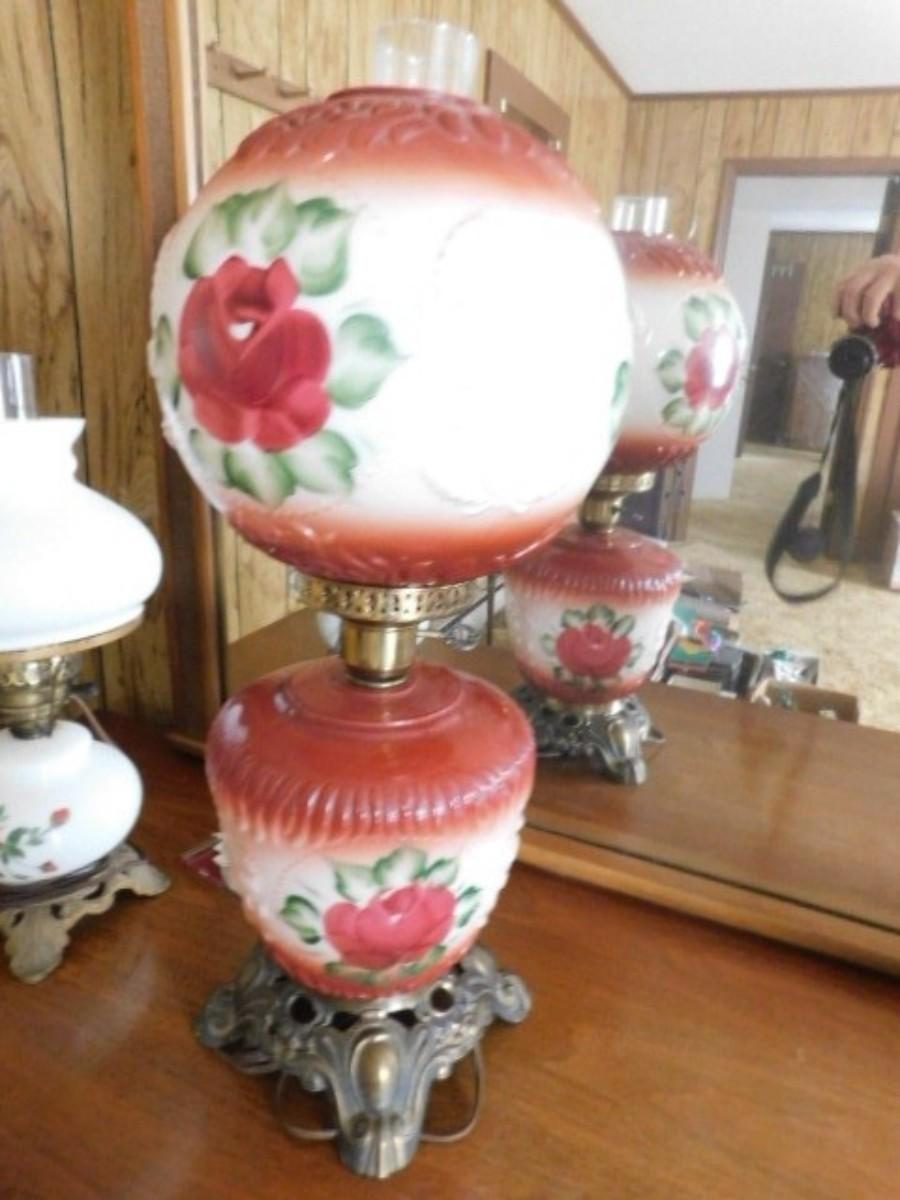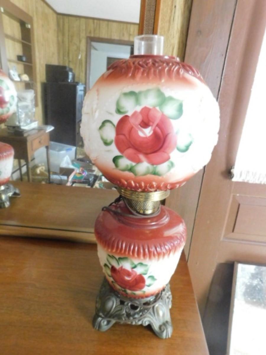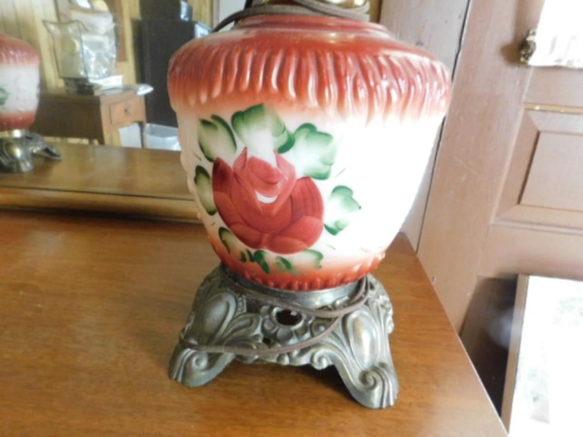 Antique Electric Painted Shade Hurricane Table Lamp 22" Choice 2 of 2
