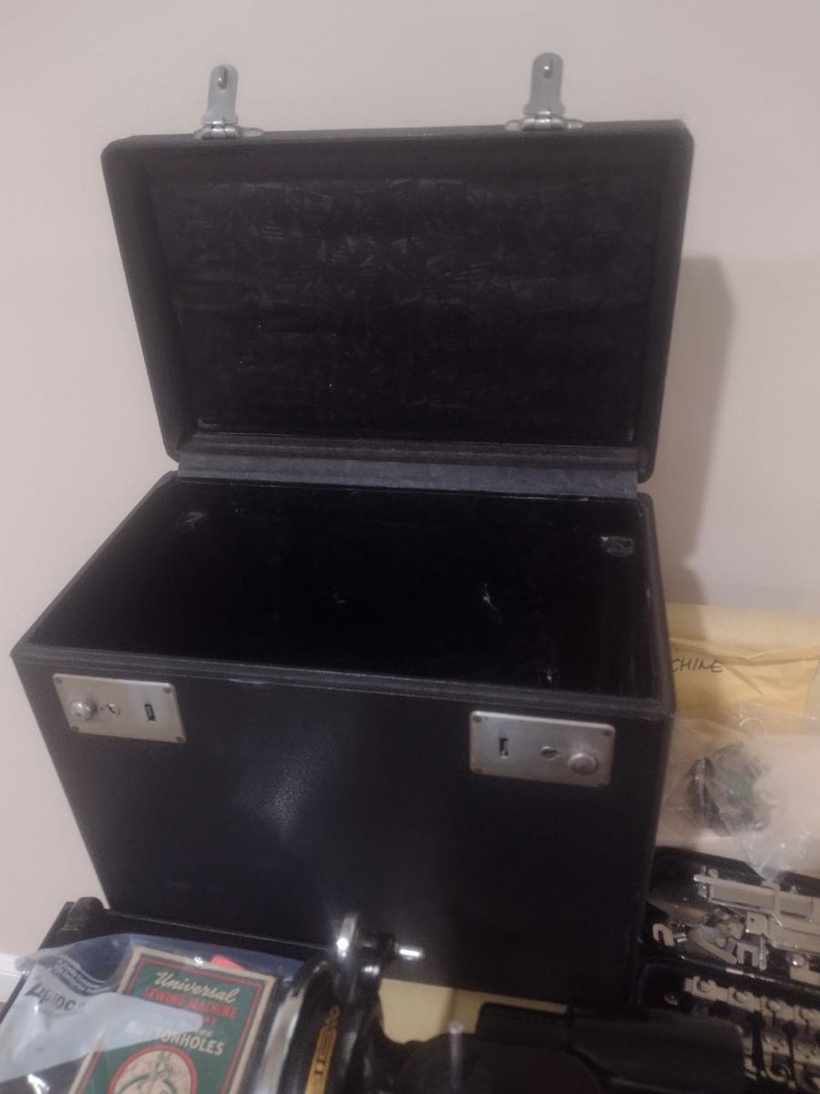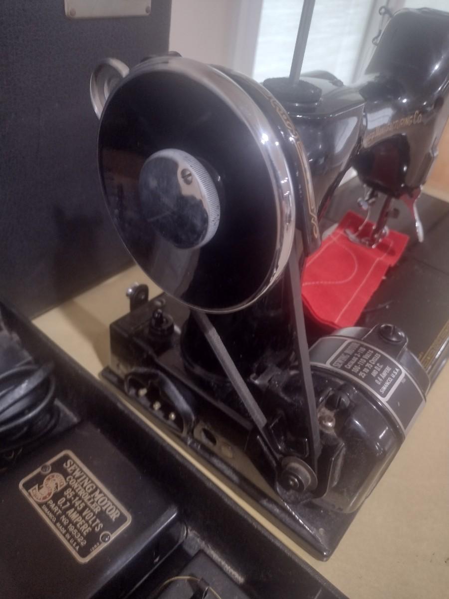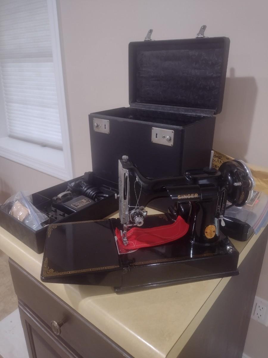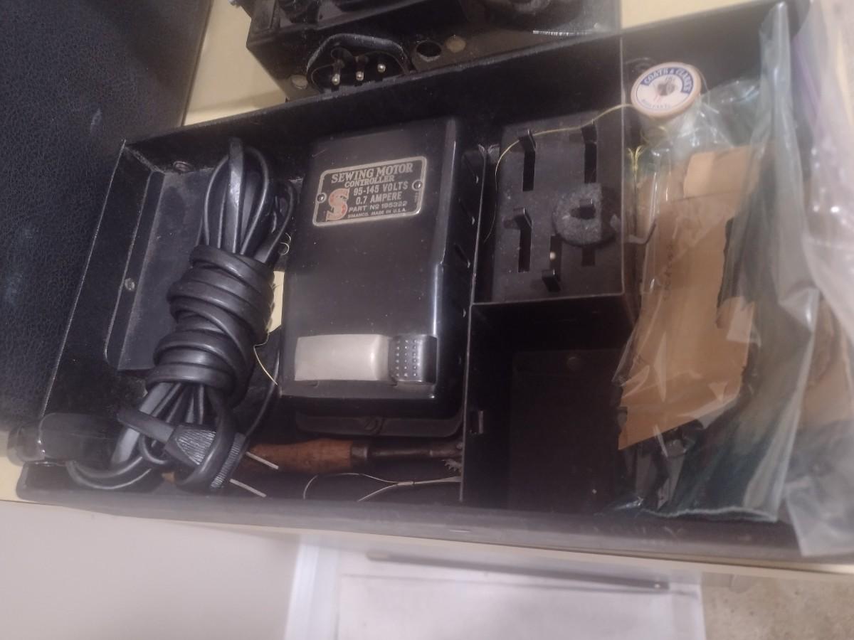 Antique Electric Portable Singer Sewing Machine with Attachments and Accessories in Working Condition