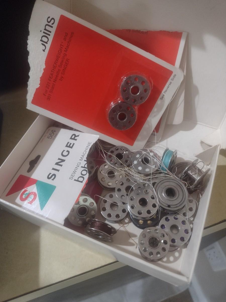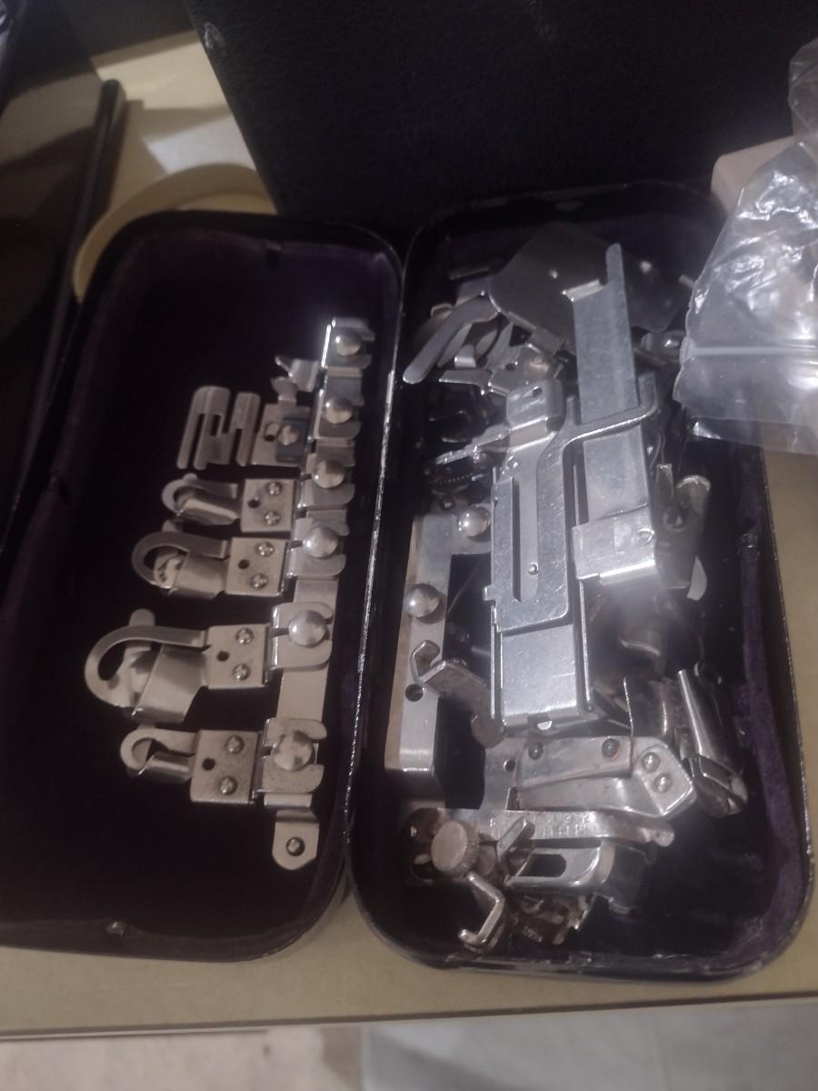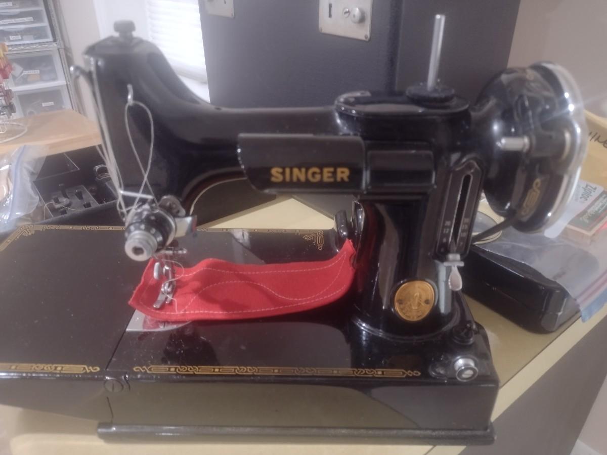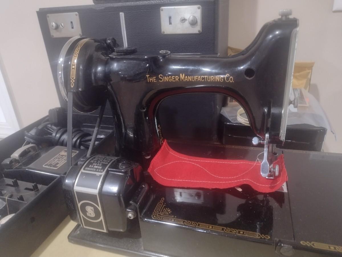 Antique Electric Portable Singer Sewing Machine with Attachments and Accessories in Working Condition