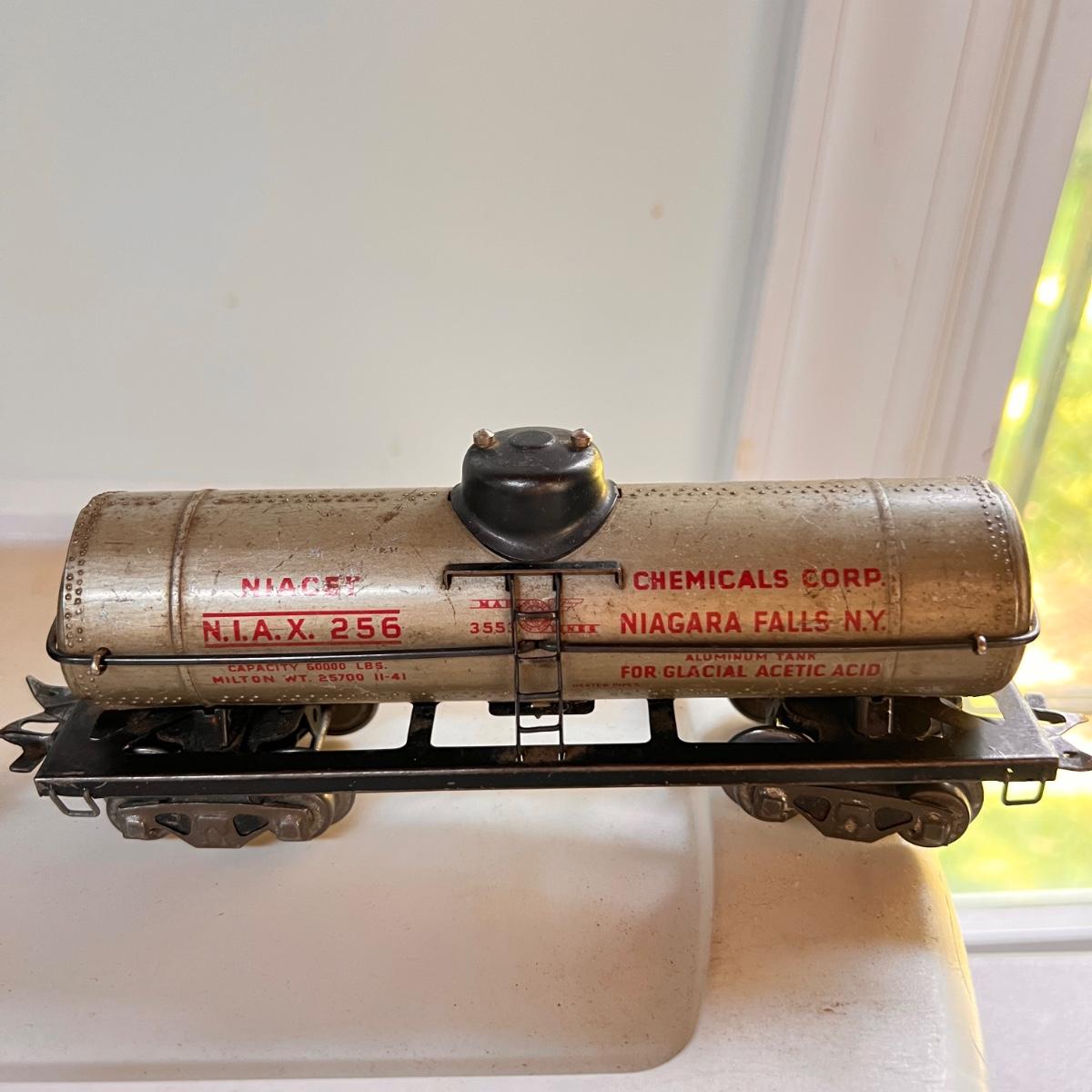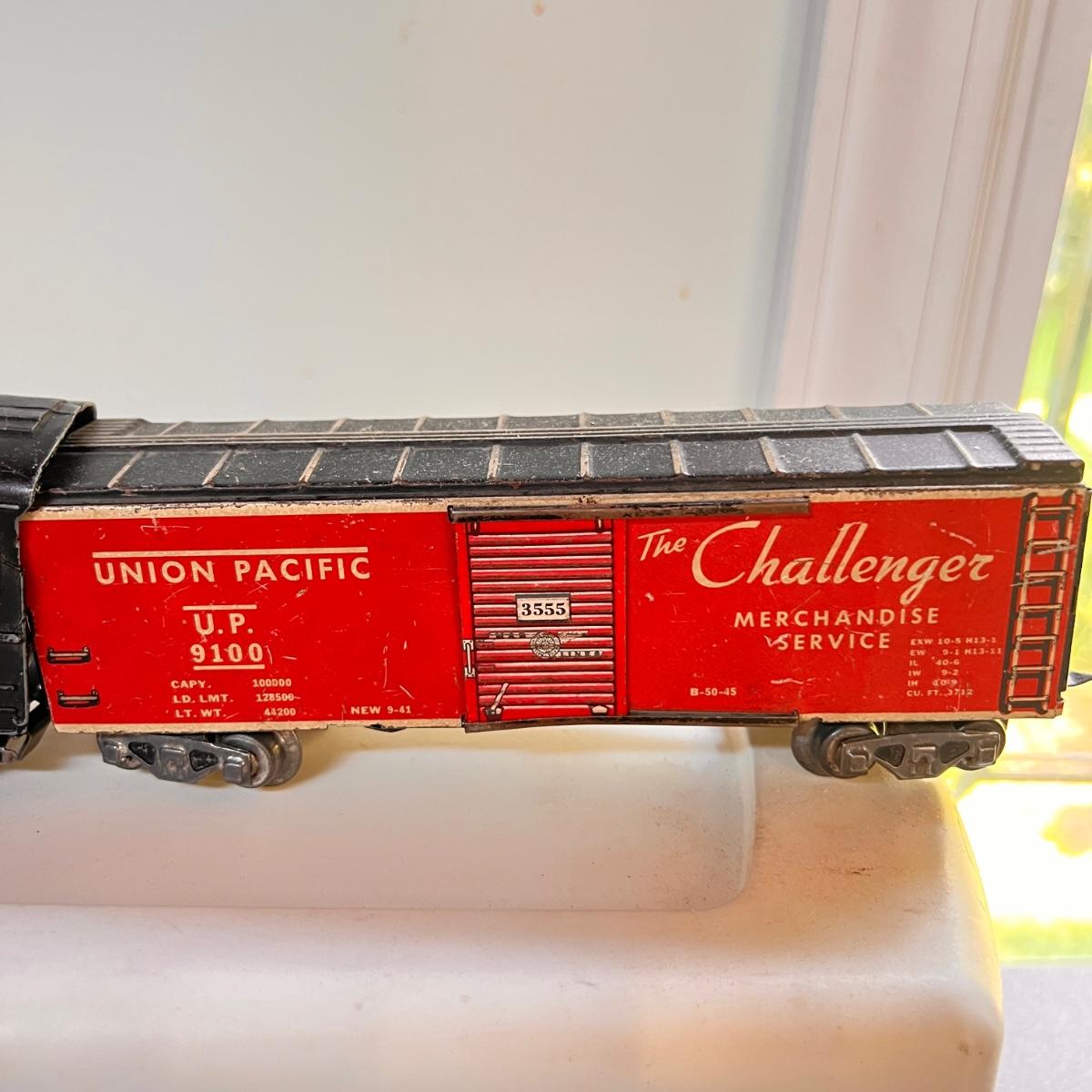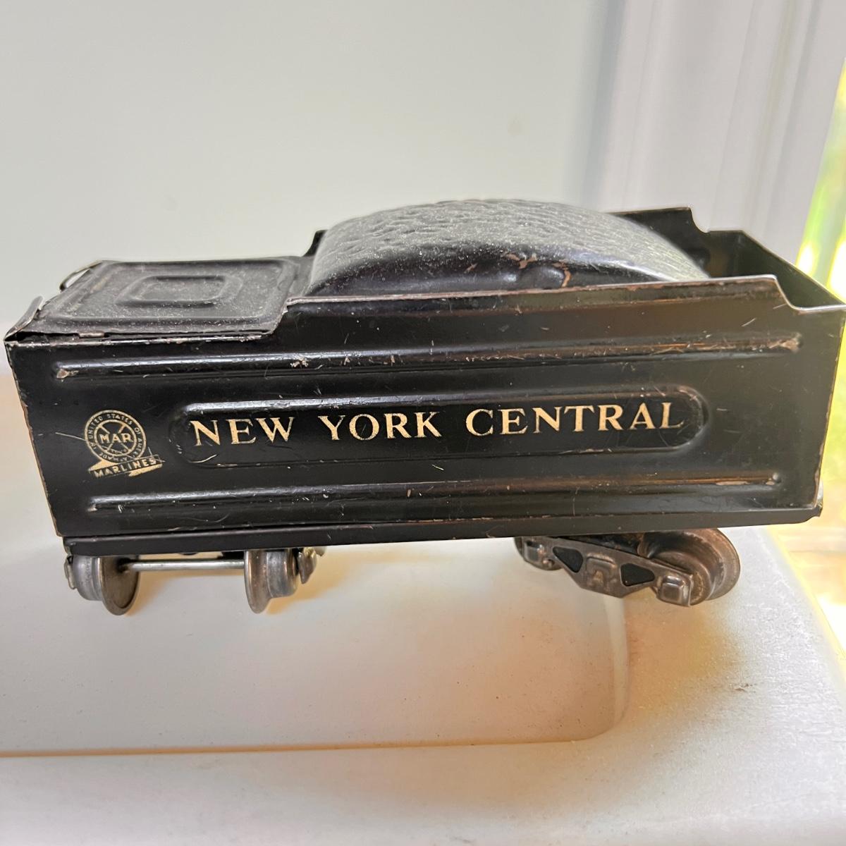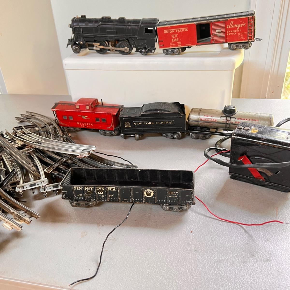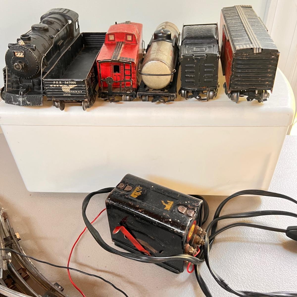 From my research this looks to be a Loius Marx & Co train set. I believe the transformer is not the original that came with the set. See all pics for condition.
