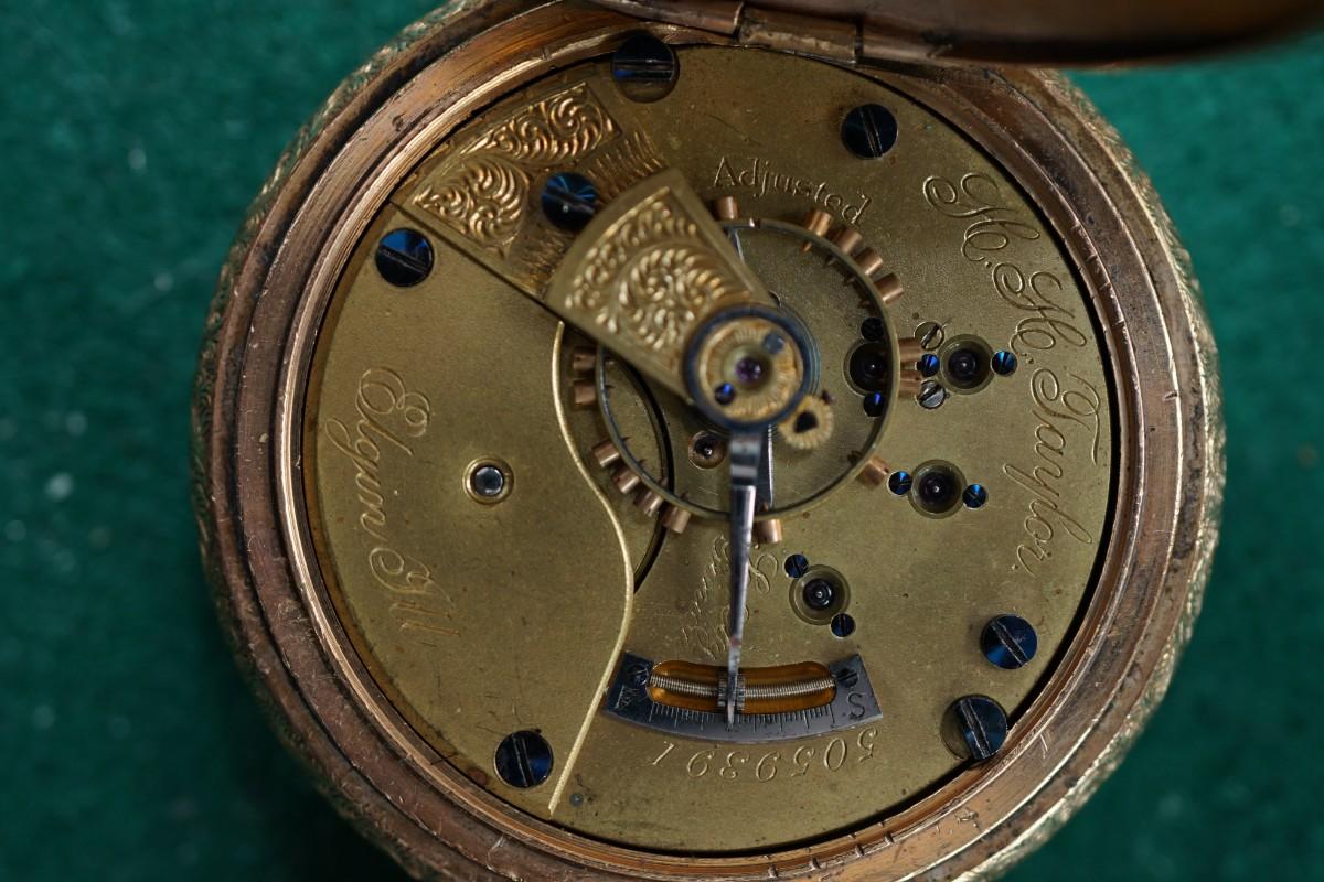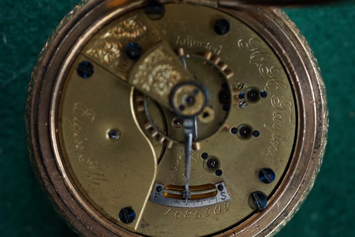 ANTIQUE ELGIN /H H TAYLOR POCKET WATCH GOLD PLATED FULL HUNTERS CASE -