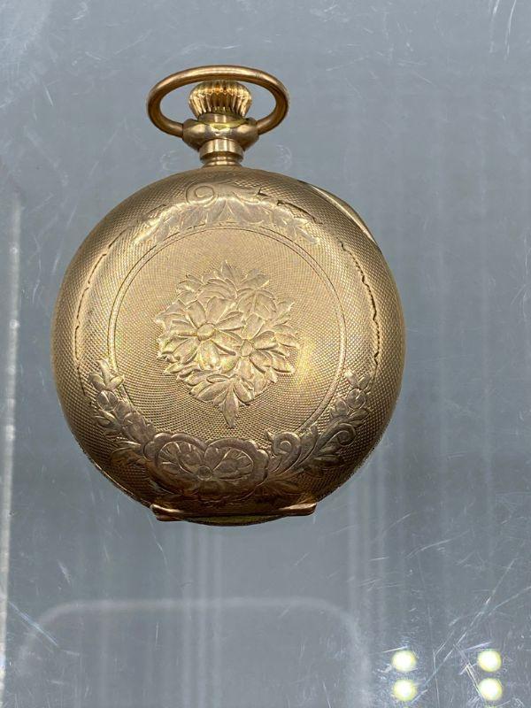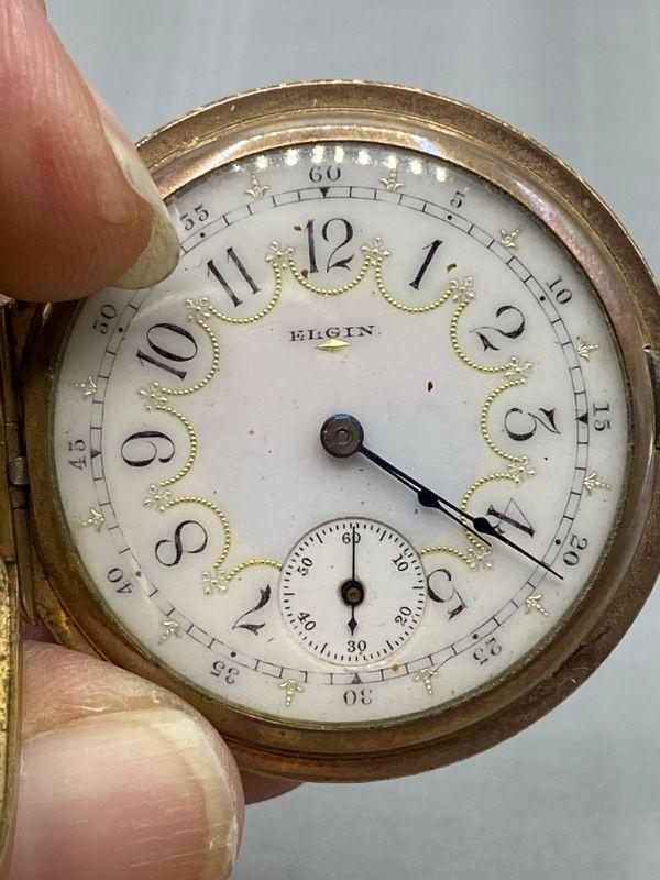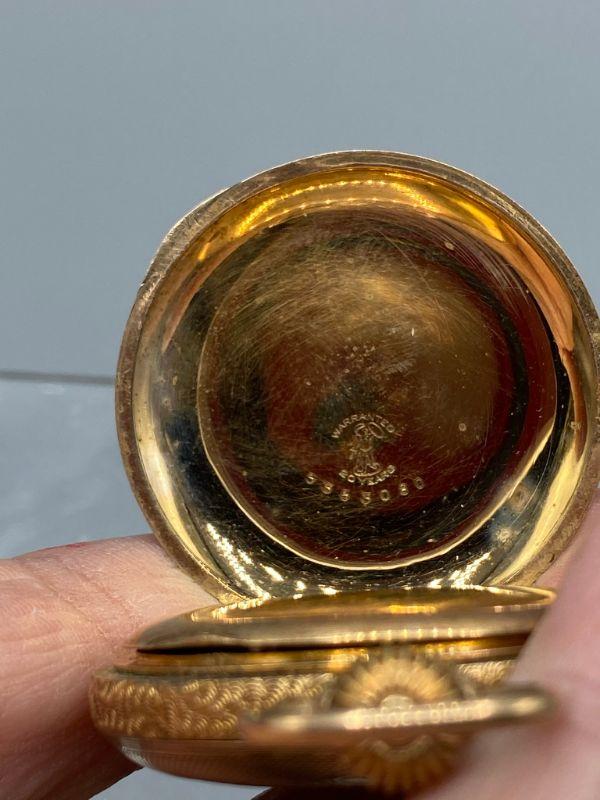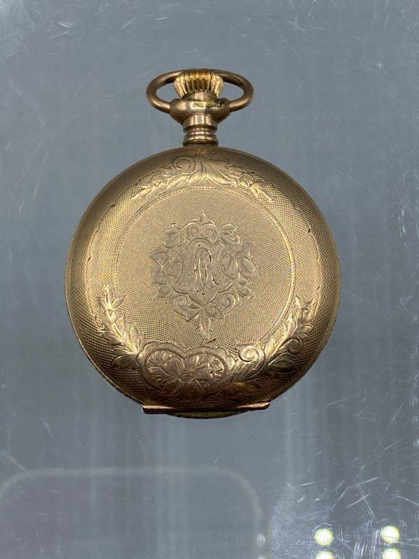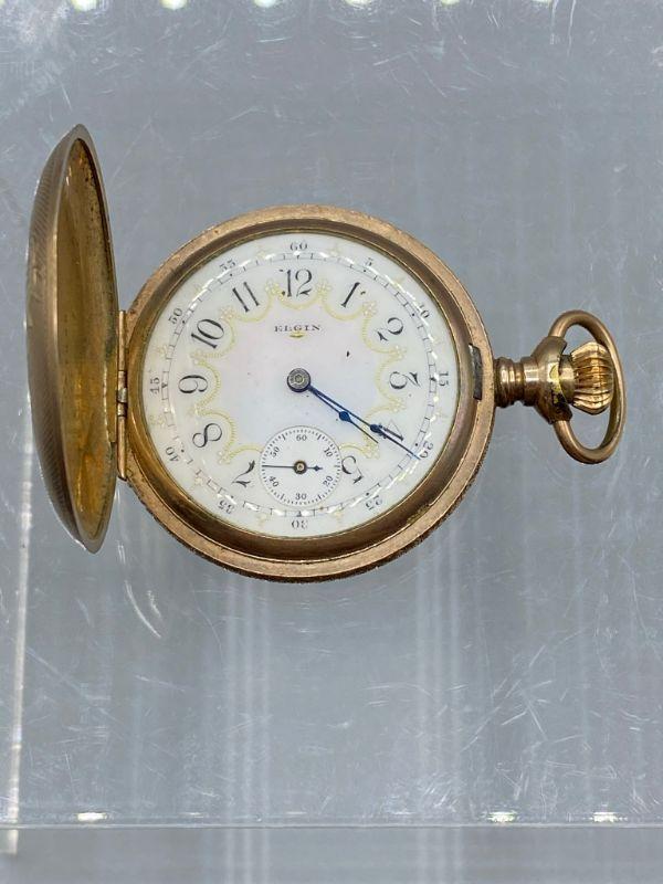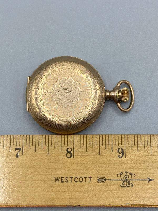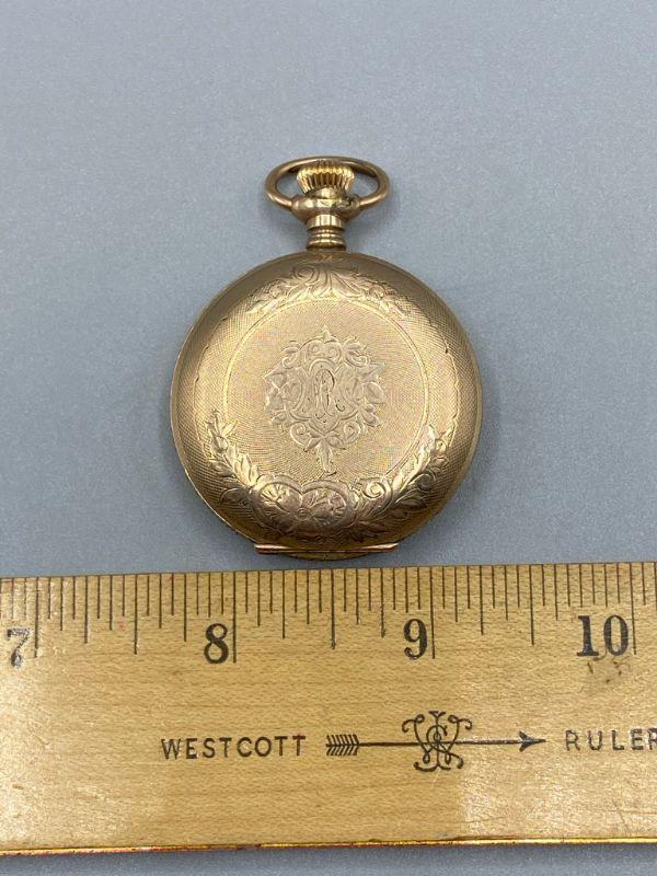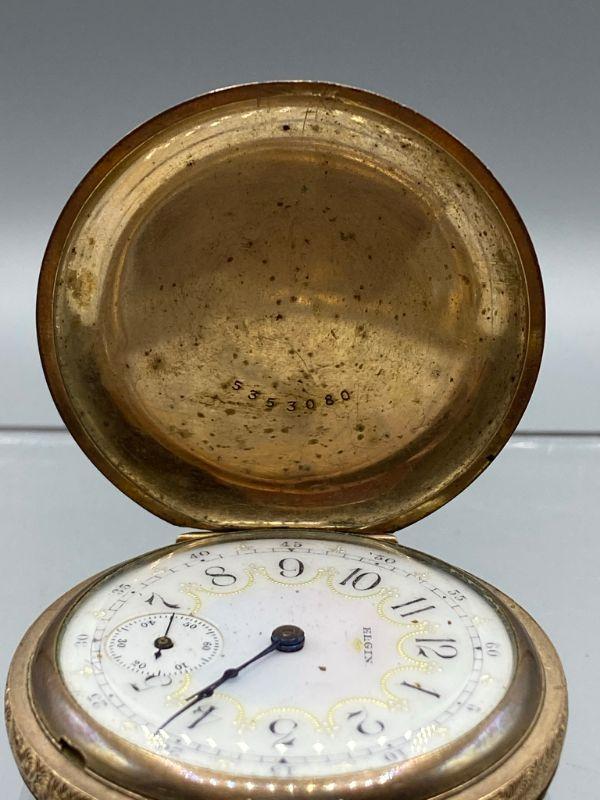 Beautiful antique Elgin pocket watch. Late 1800s/ early 1900s. No gold markings on case, but looks to be gold fill. Ornate floral hunters case with "MR" monogrammed on the front. Currently not running, may be automatic, when moved around a bit it did start to tick for a few seconds. 15 jewels. Serial number #5353080. About 1.5" wide.