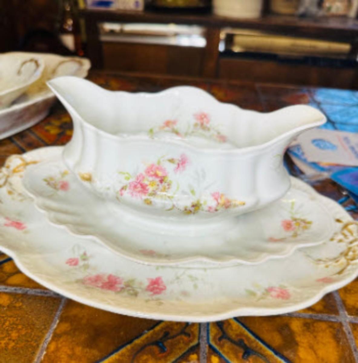 Antique Elite Limonges French France Gold Trim Serving Piece - Gravy Bowl Dish