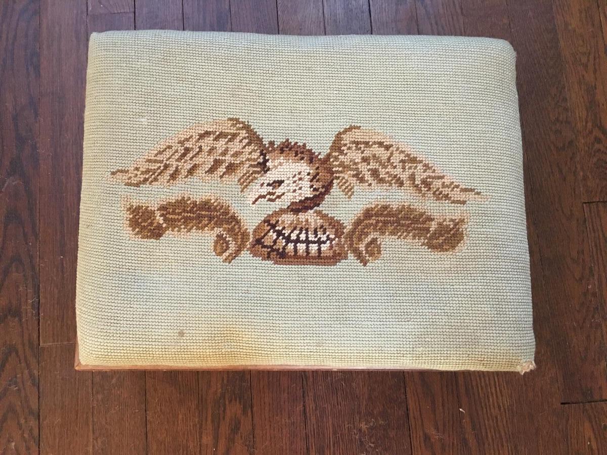 Eagle design. Some damage on corner, otherwise good condition.