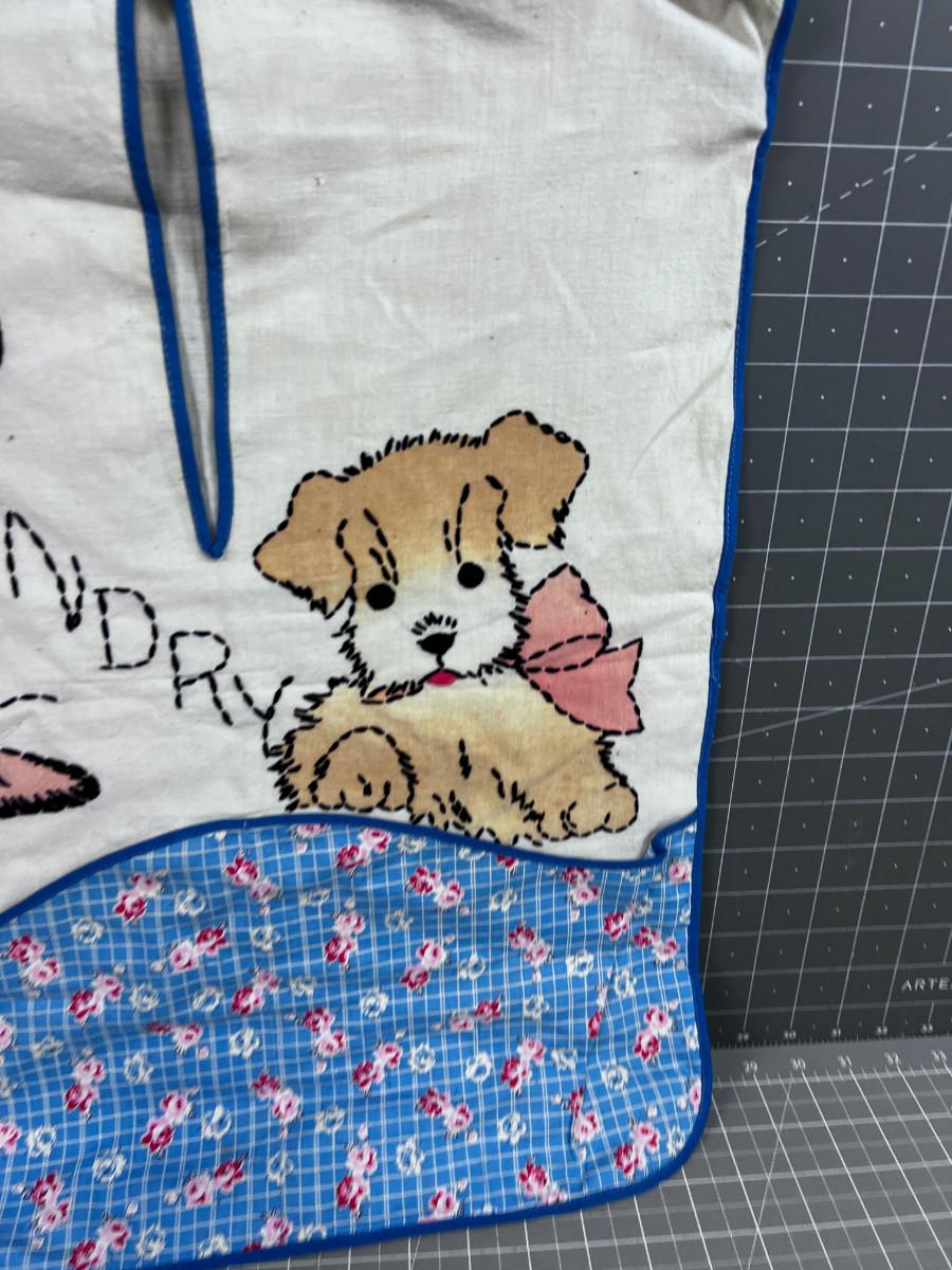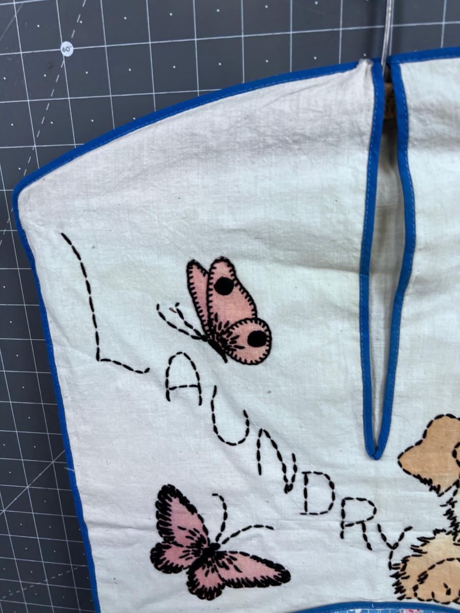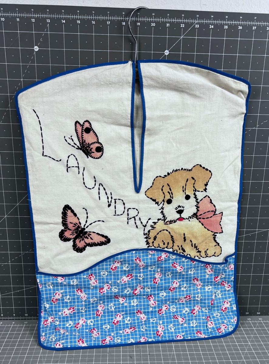 Antique Embroidered Laundry Bag - Puppy & Butterfly !