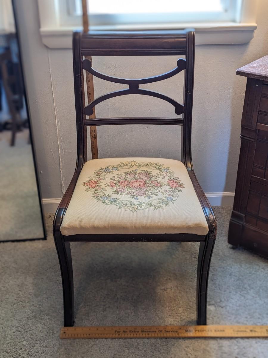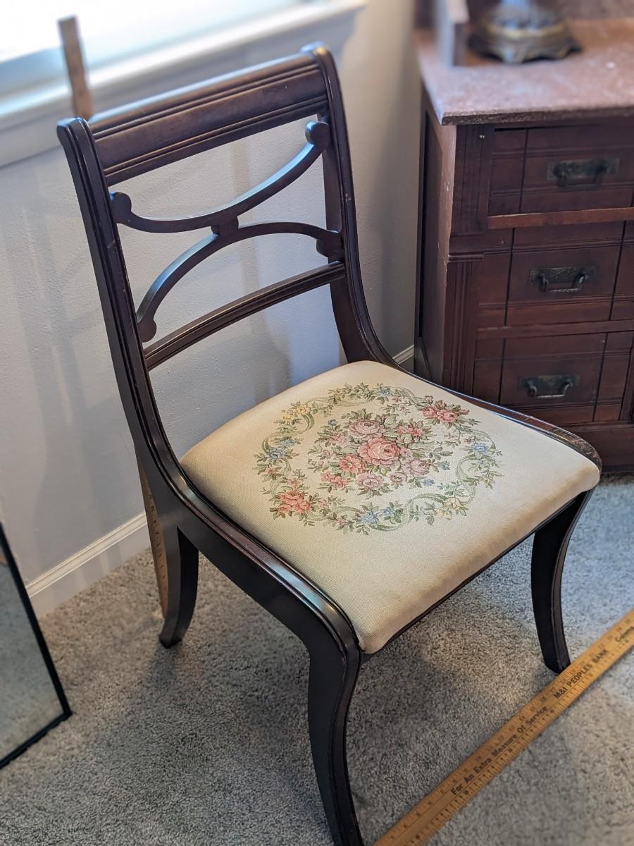 Antique Embroidered Mahogany Side, Dinette Chair