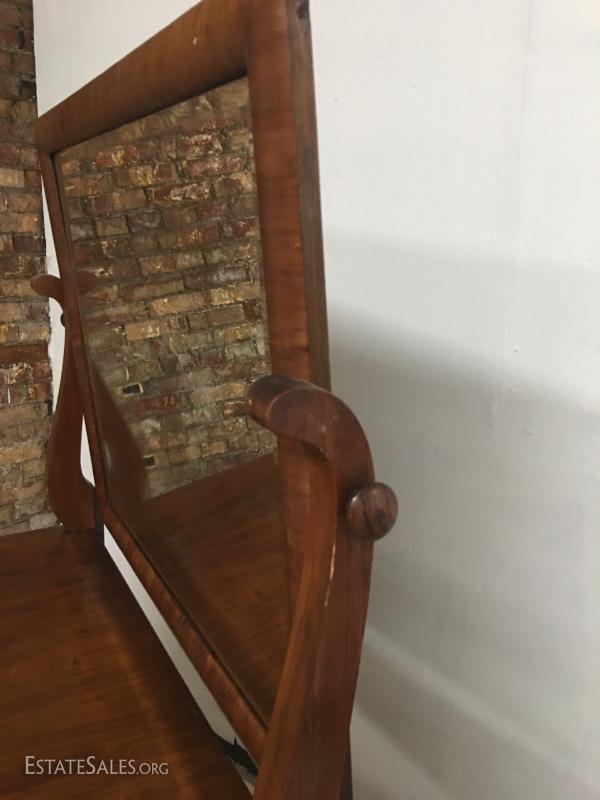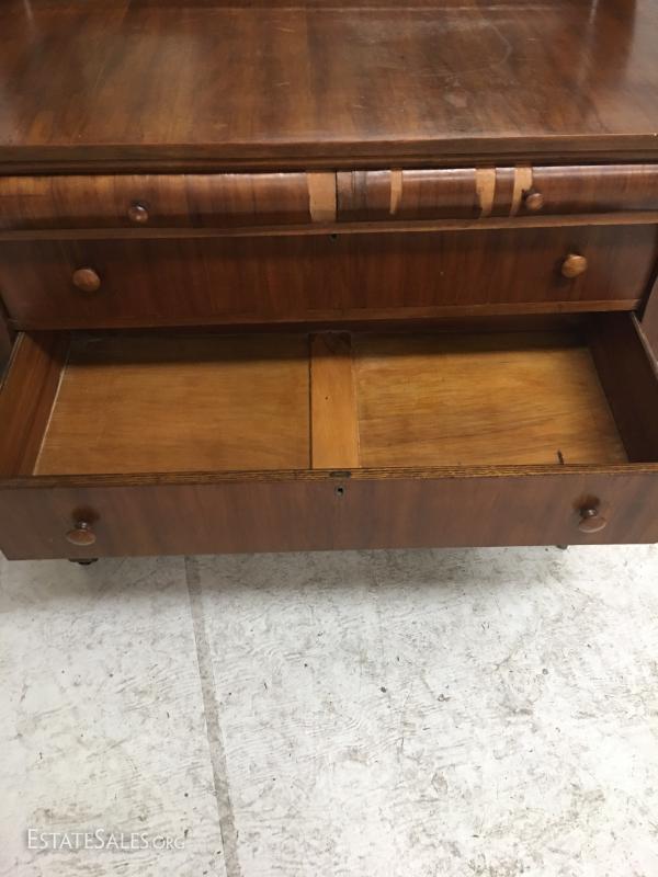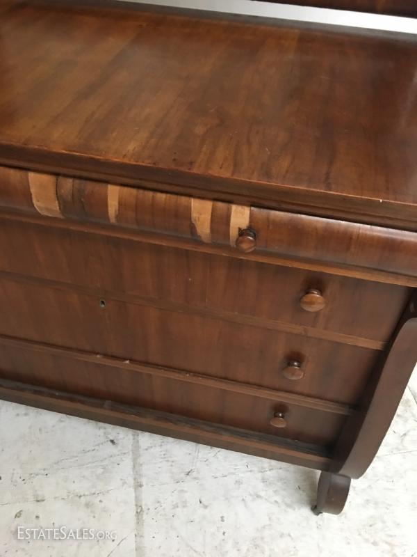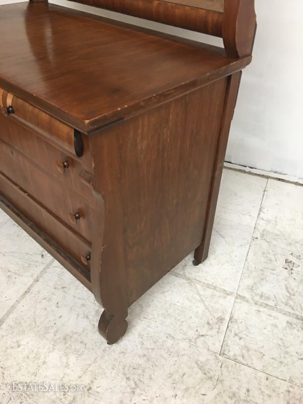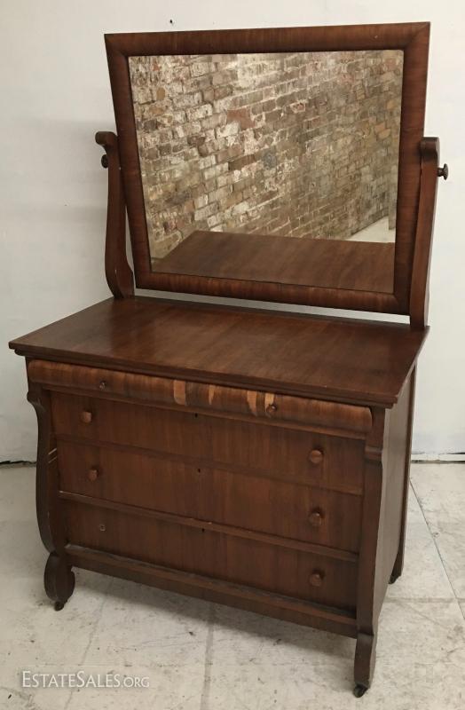 Antique Empire Style walnut burl veneer dresser w/mirror. Lot#5