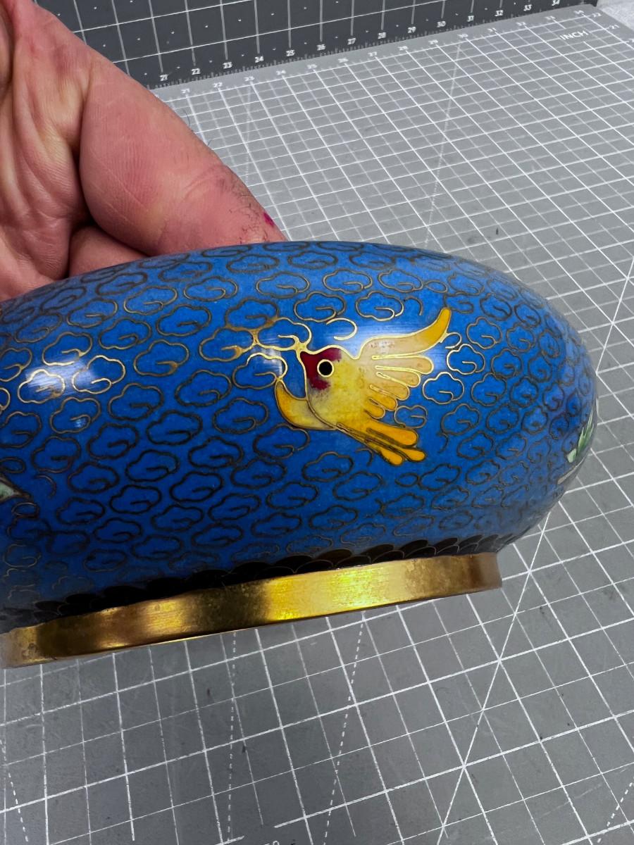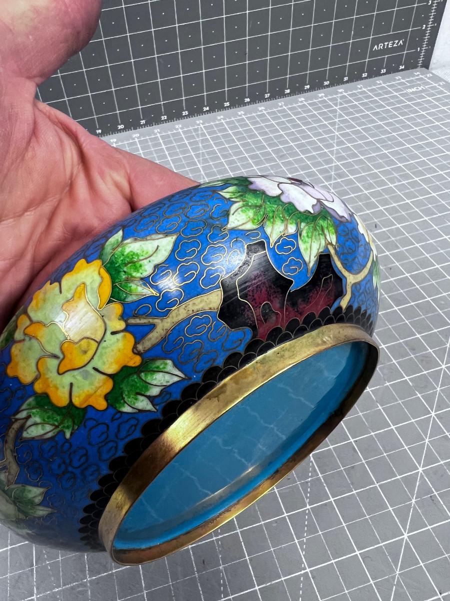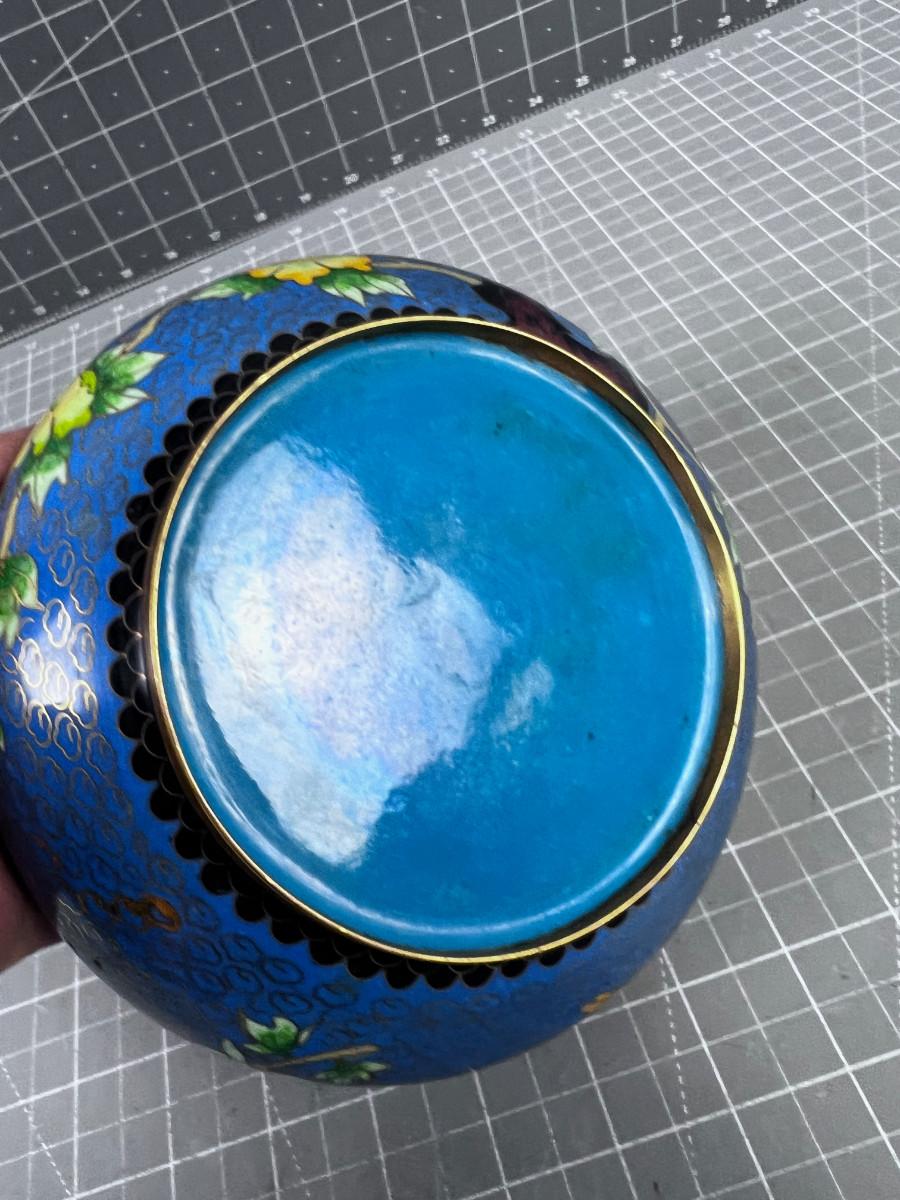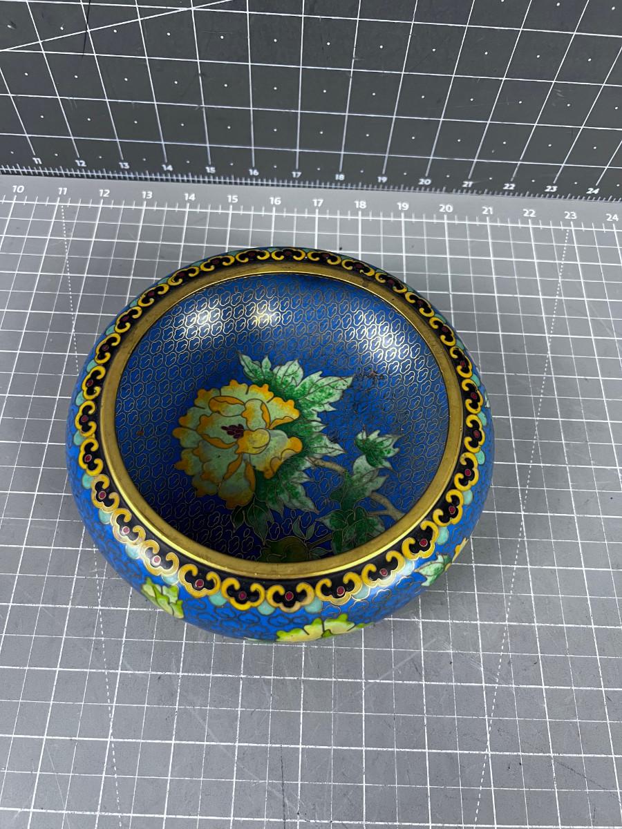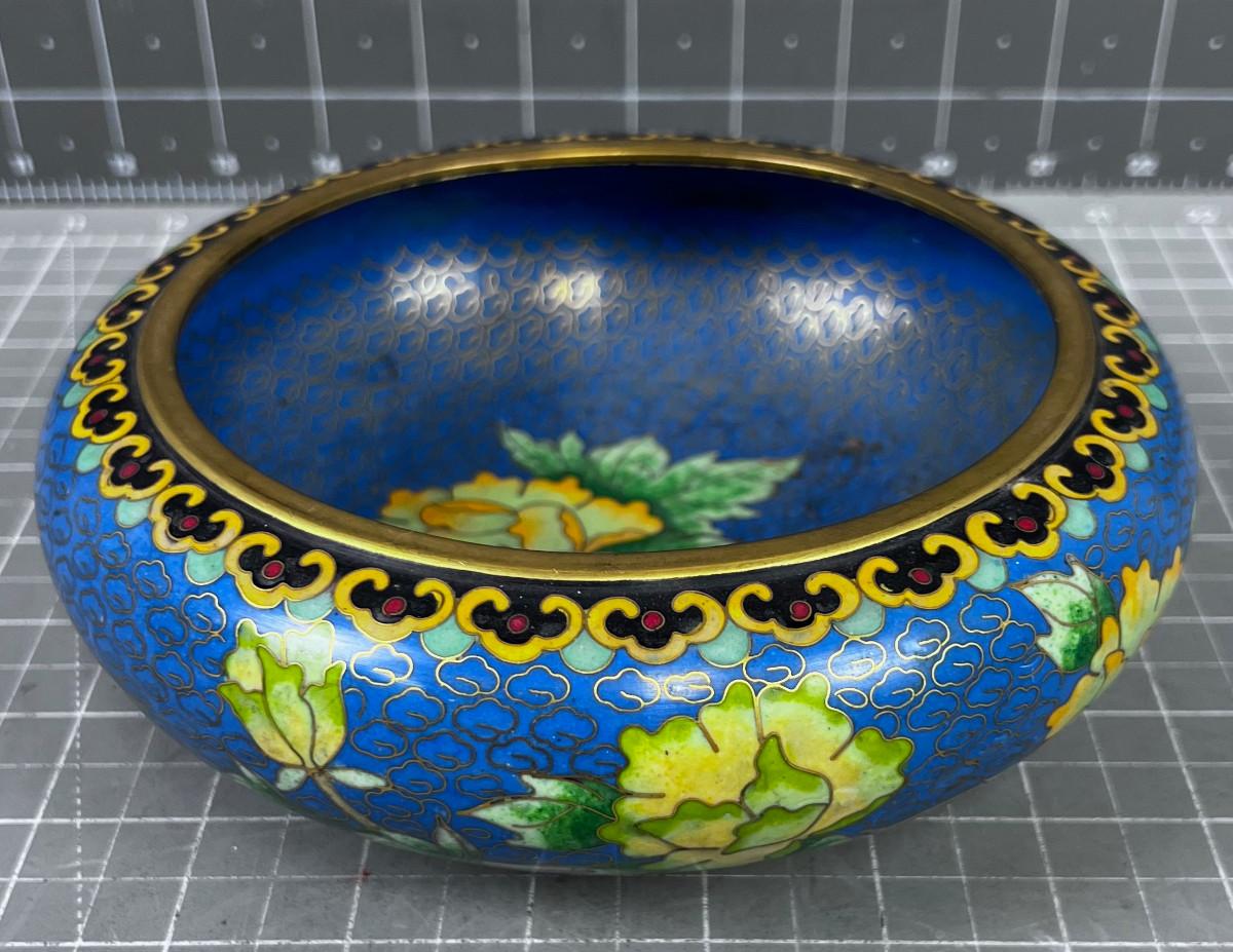 Antique Enamel Bowl, Blue Cloisonne