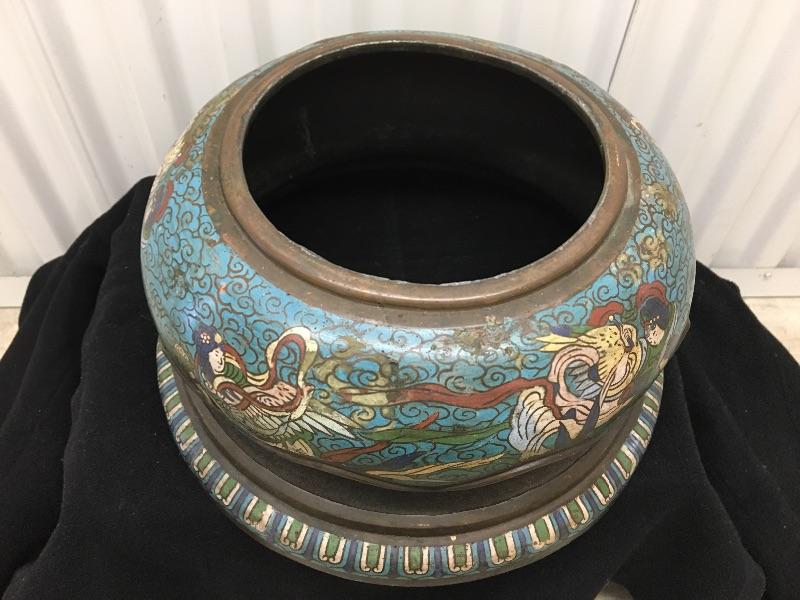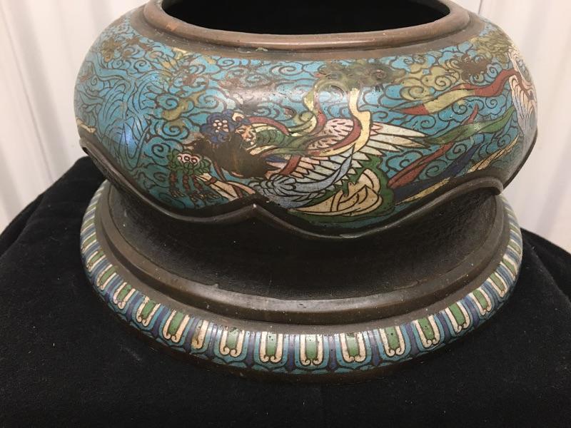 Antique Enamel Champlevé Japanese Lamp Base