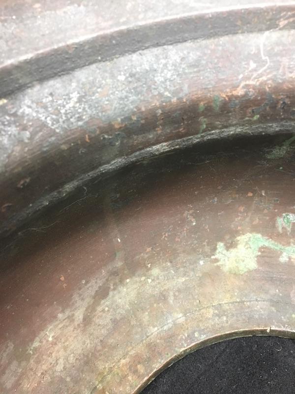 This is a rare bronze base made in Japan in the mid 1800s. Condition is as shown. Heavy large piece measures 7” high and 13” across the bottom. The opening in the top is 7” across. Delivery and shipping services available. Please contact us to request a quote.