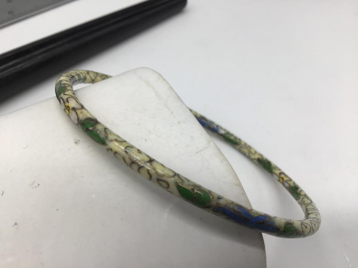 ANTIQUE ENAMEL CLOISONNE CHINESE BANGLE BRACELET FINISH BOTH SIDES FLORAL