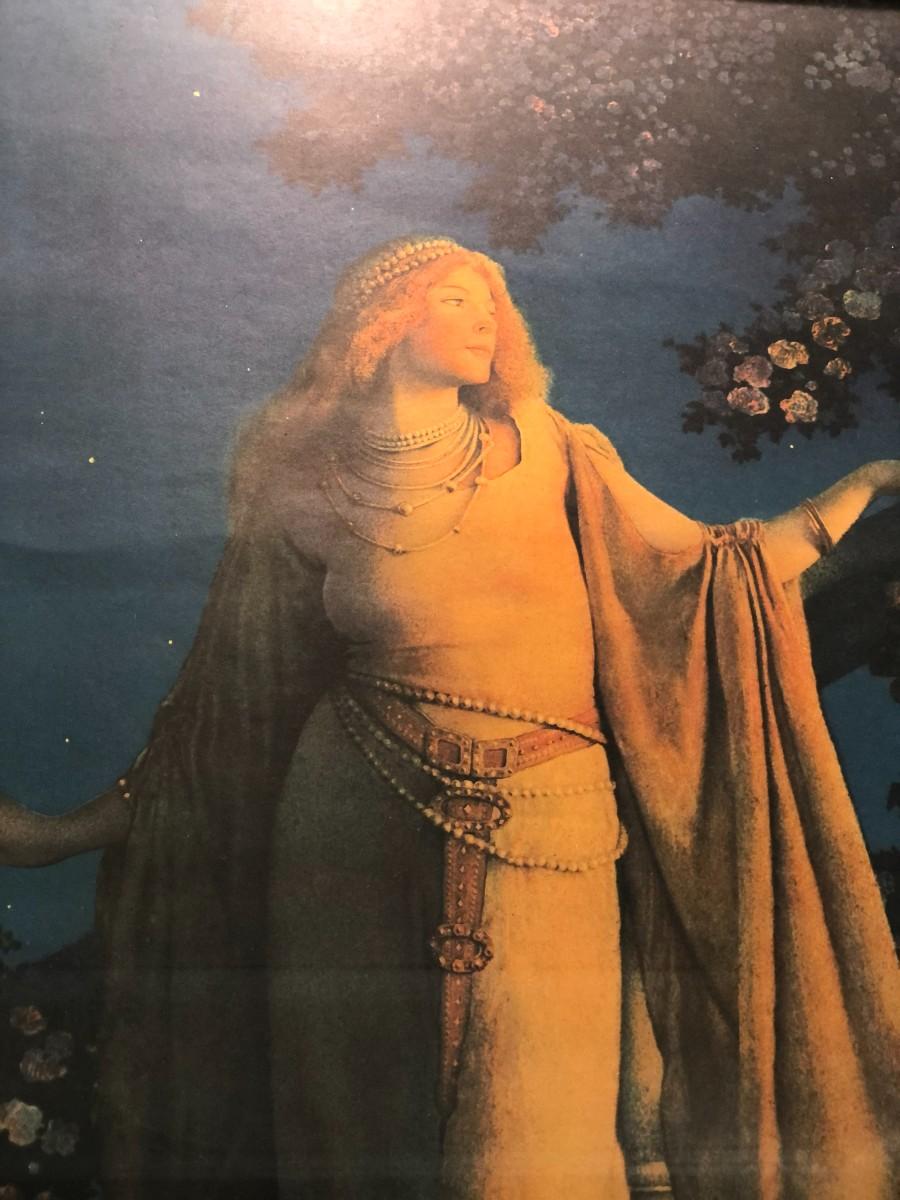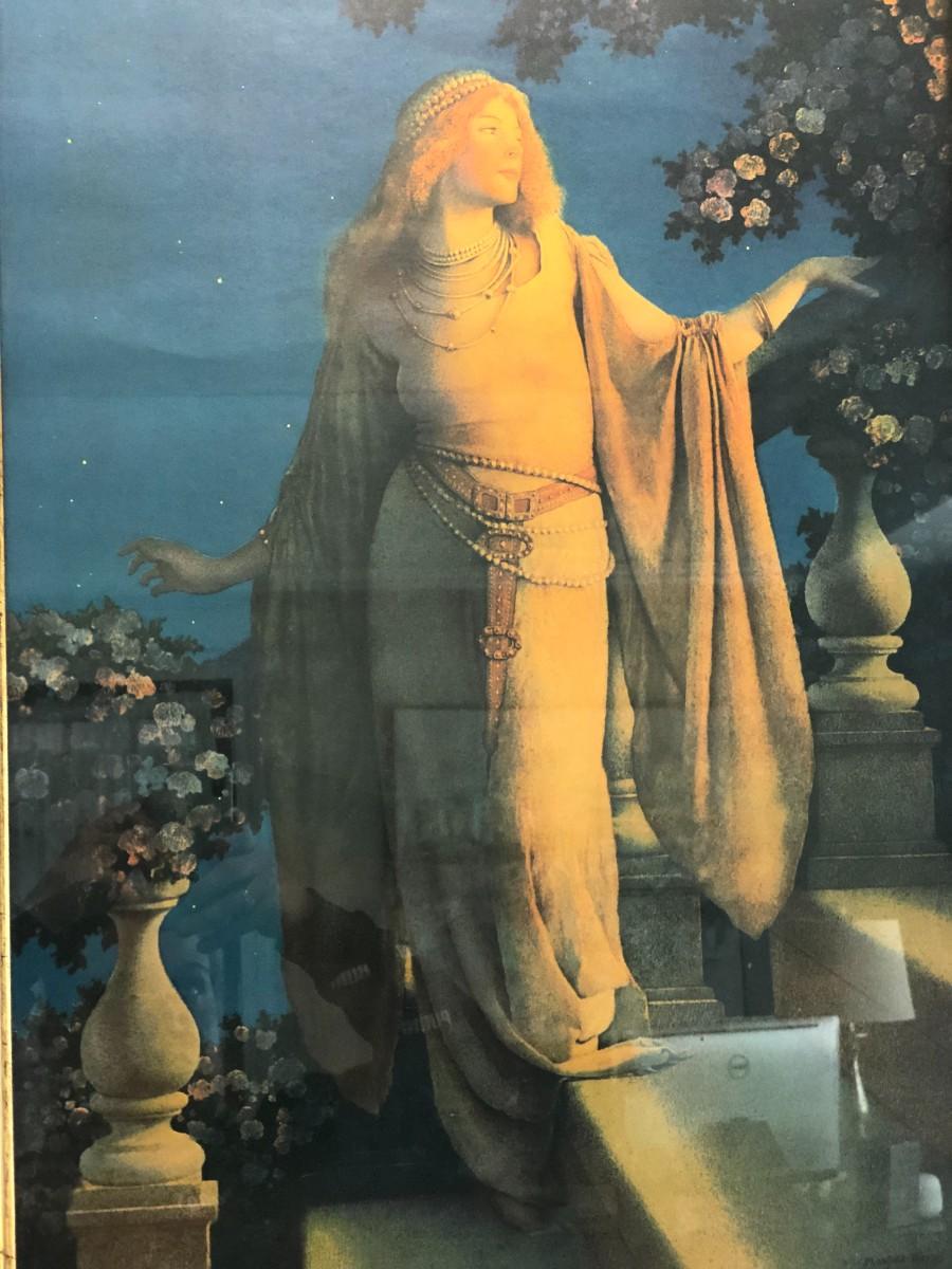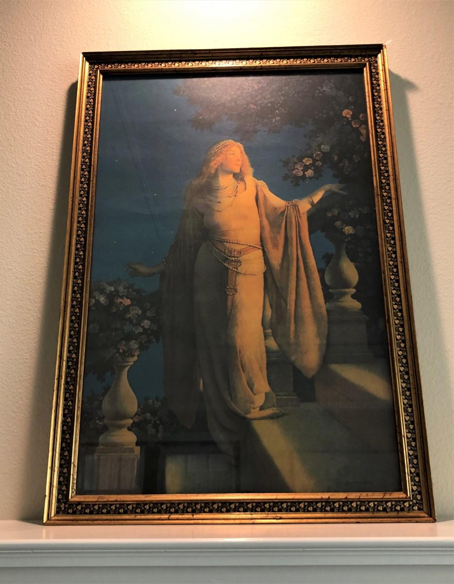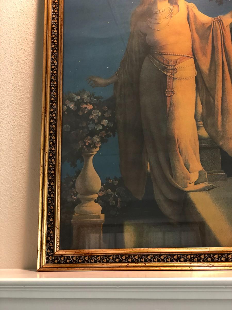 Beautiful vintage framed print of "Enchantment" (Cinderella) by Maxfield Parrish circa 1926. In very good condition.