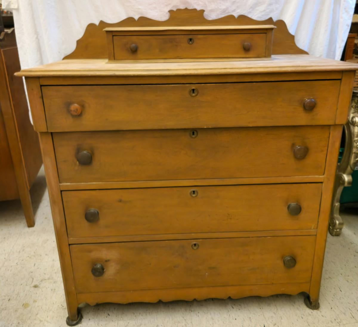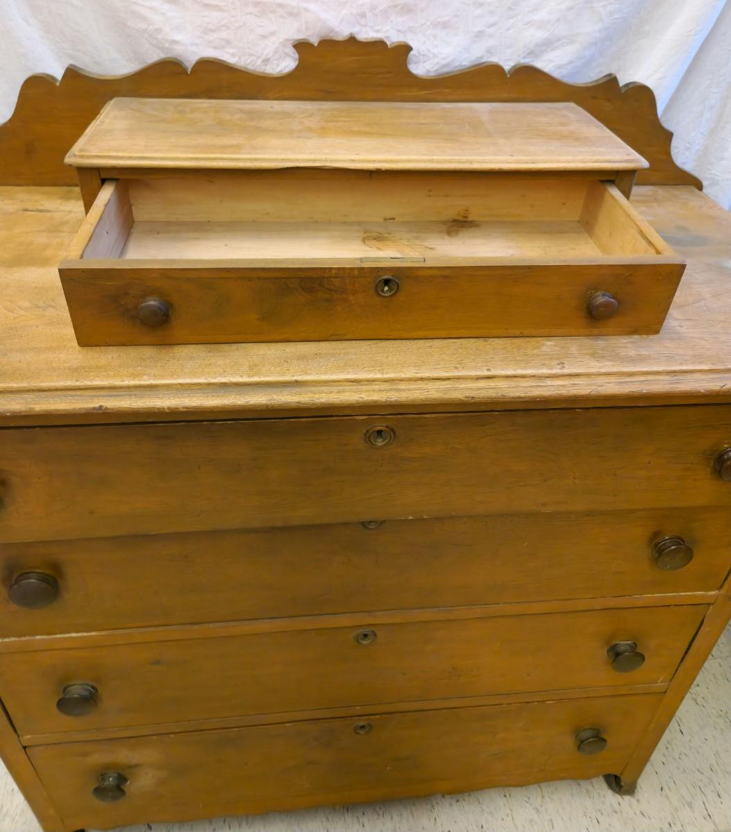 Beautiful antique dresser. Single glove box attached to the top and back. 44"x49"x20.5"