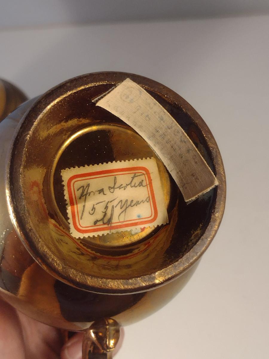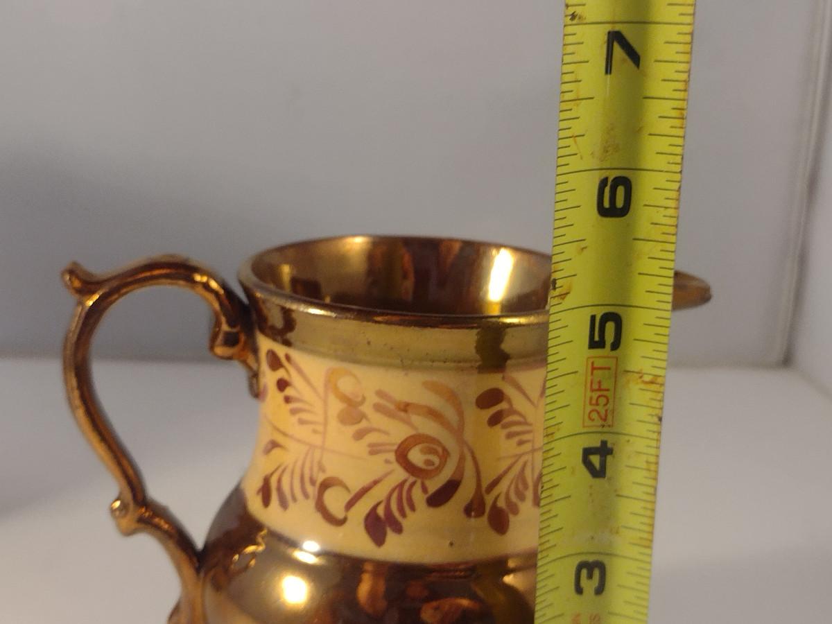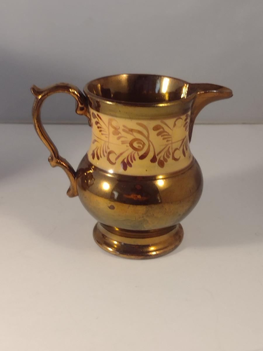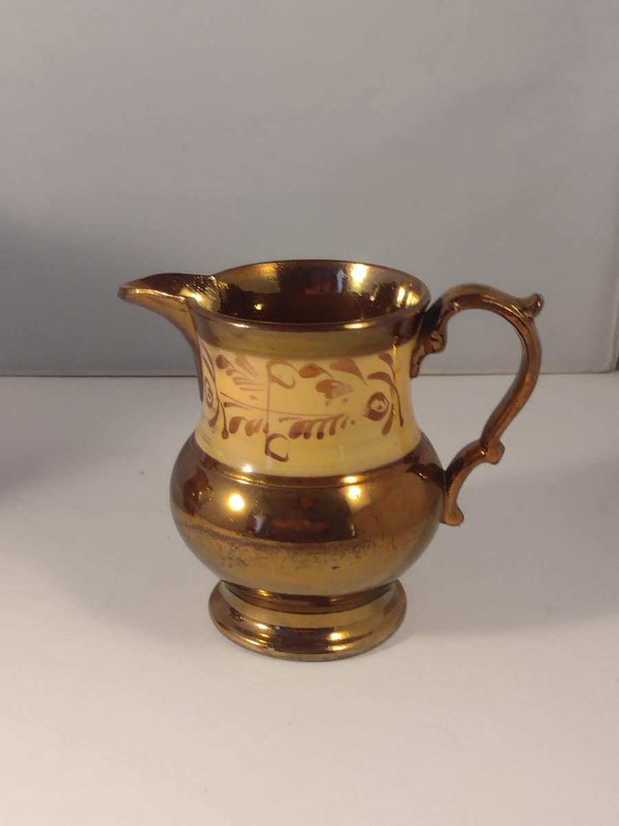 Antique English Lusterware Pitcher- Copper Color with Cream Band- Approx 5" Tall