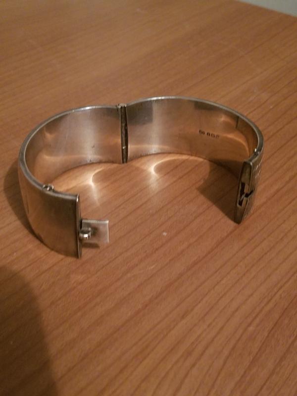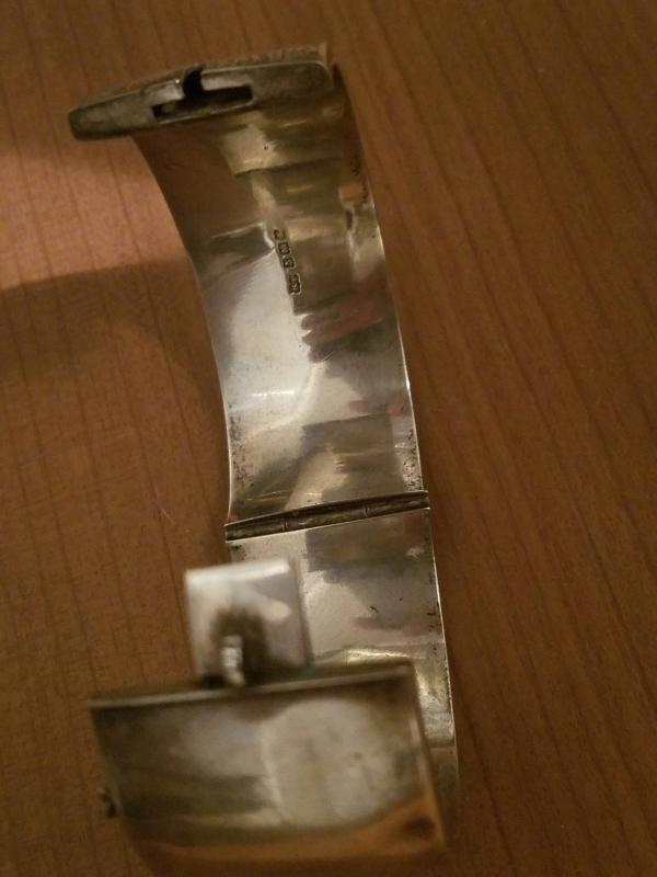 Has some superficial dents but that does not take away from the beauty of this more than 100 year old wearable Artisannes@aol.com Art.