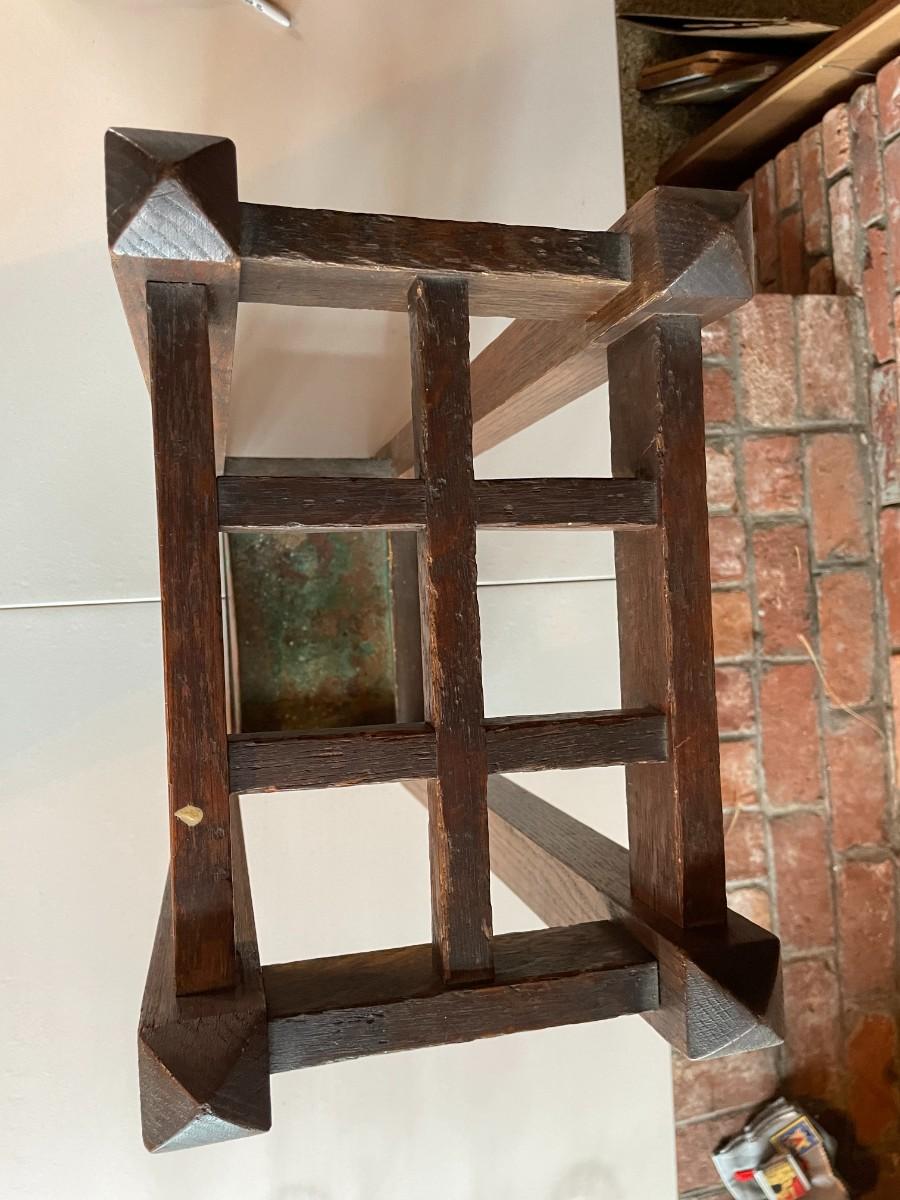 Six sections and features a copper piece at the bottom of each leg which is slightly damaged. 14L x 10W x 28H.