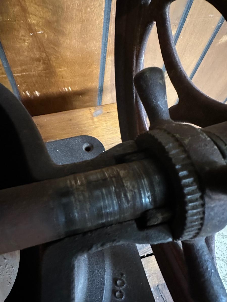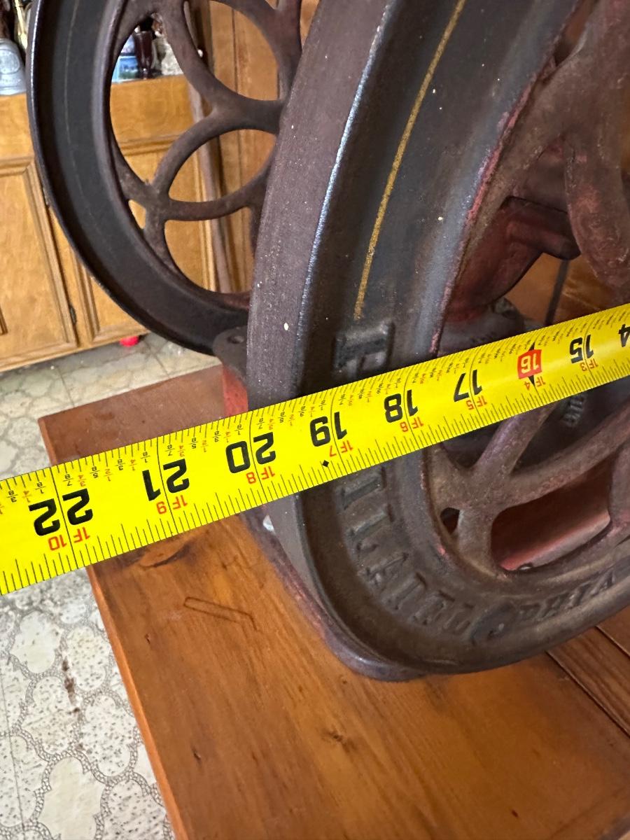 Philadelphia, USA. Excellent industrial look with original paint remnants and aged patina. Turns freely; great display piece for kitchen, store, or collection.