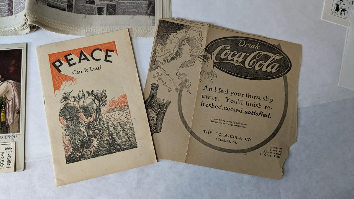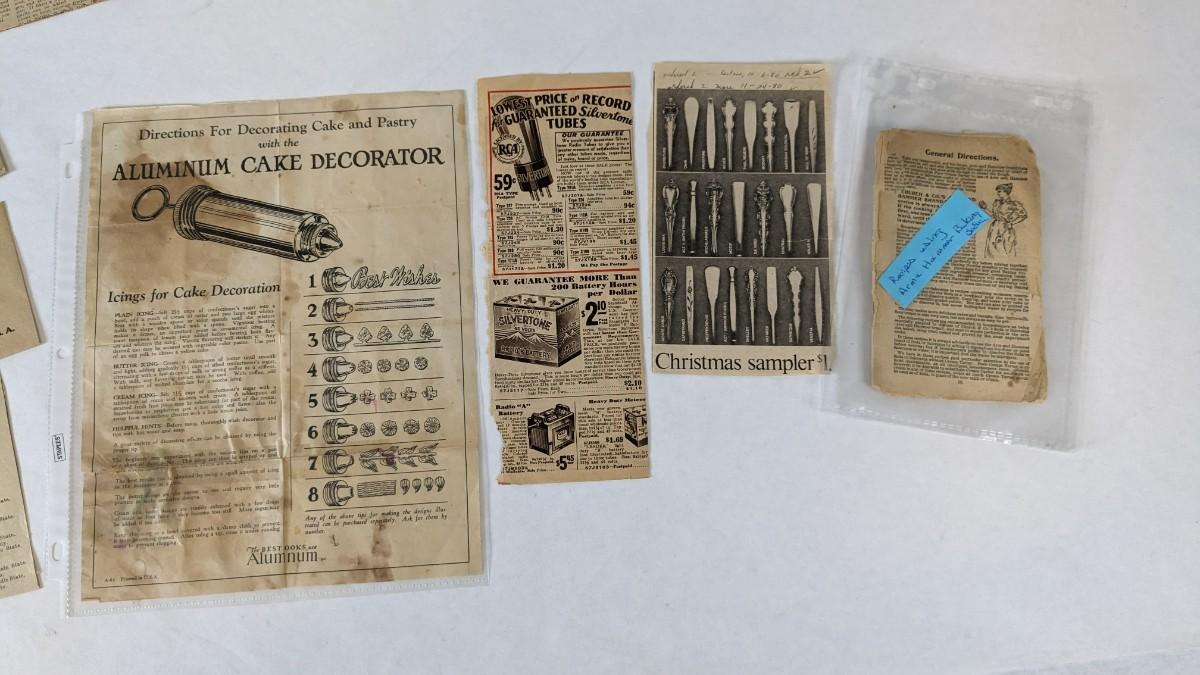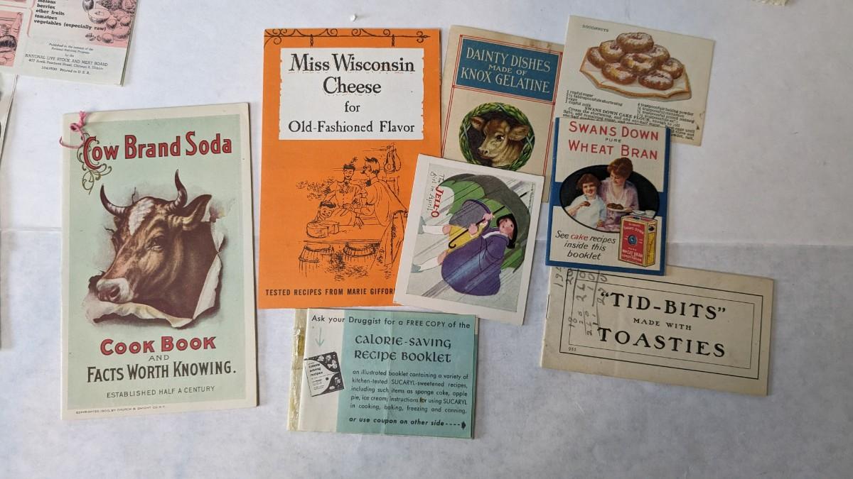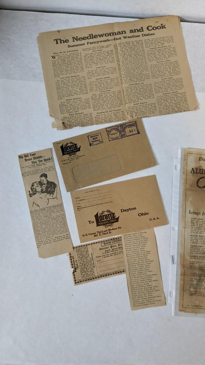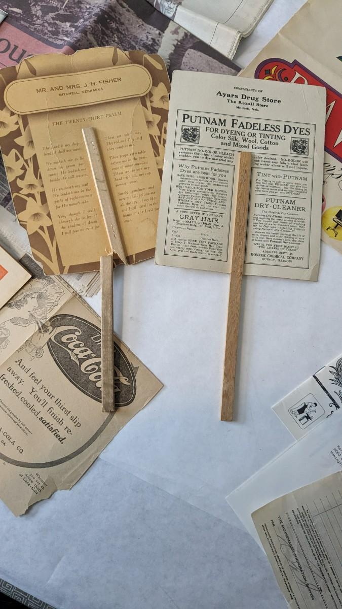 Some truly incredible pieces of varied advertising, informational, and newspaper items in this wonderful ephemera assortment! Includes 1908 calendar, various kitchen guides and ads, paper fans (please note piece with broken handle) informational booklets, and so much more! This is an amazing upcycle or history buff lot!
