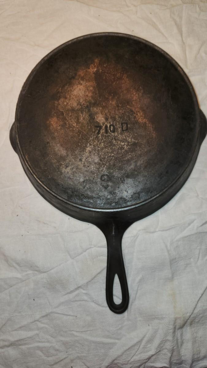 710D. Pre-griswold antique cast iron pan. Little rust on the bottom.