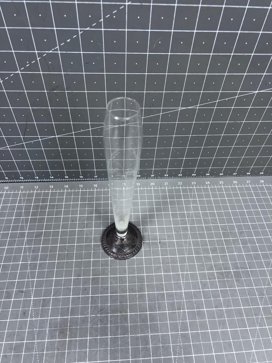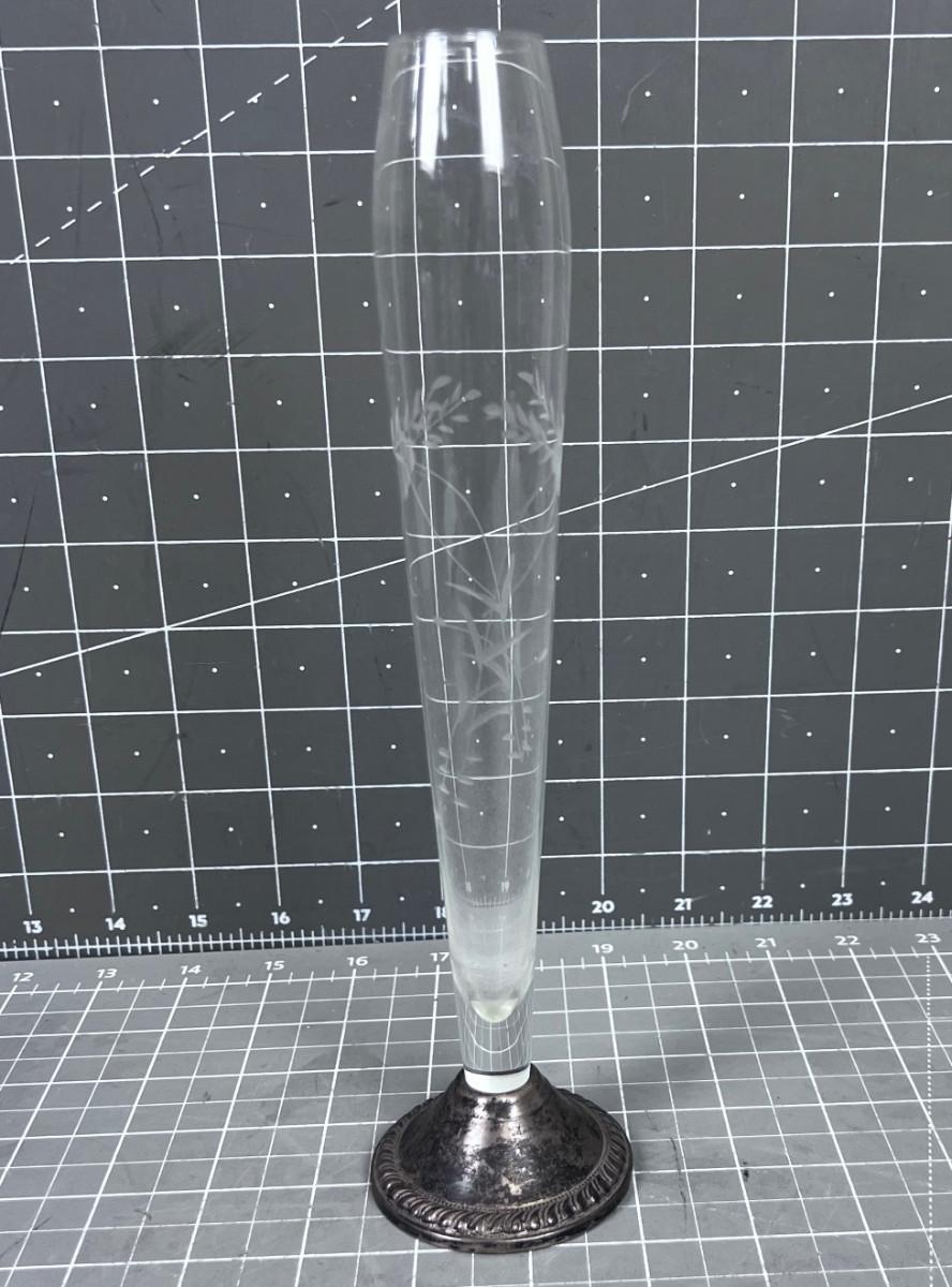 Antique Etched Glass Bud Vase, Weighted Sterling Base